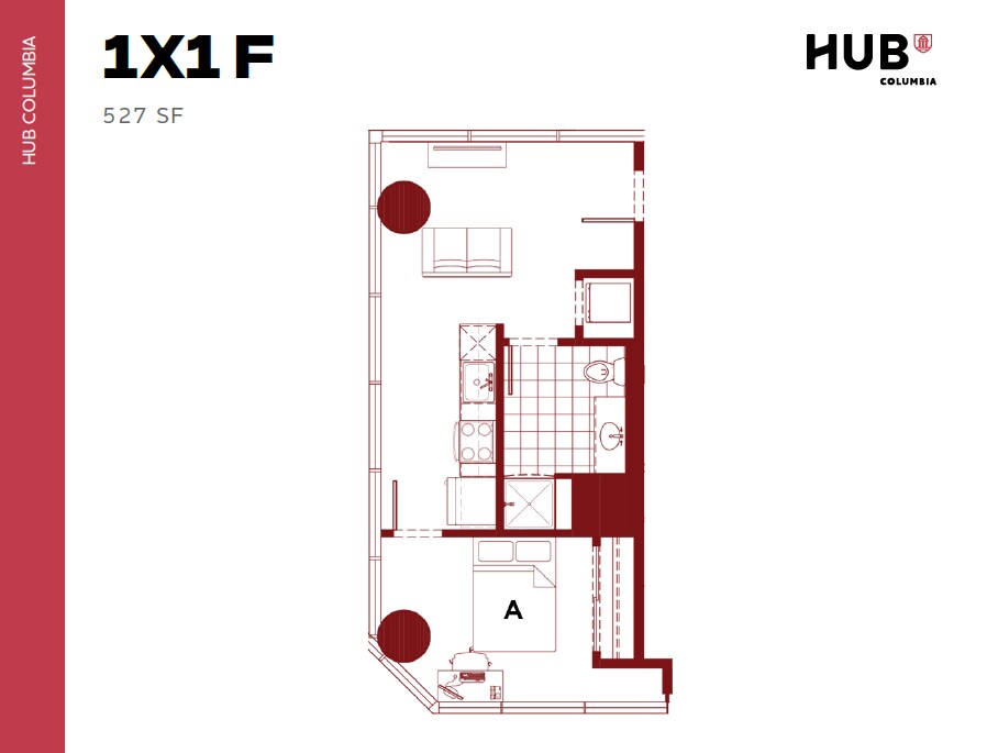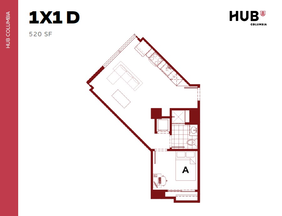 Studio Convertible - Plano 2 Unidad de apartamento: PrivateModelo de apartamento: Studio ConvertibleEstudio, 1 Baño, 496-540 sq ftDisponible August 15, 2026Studio Deluxe B