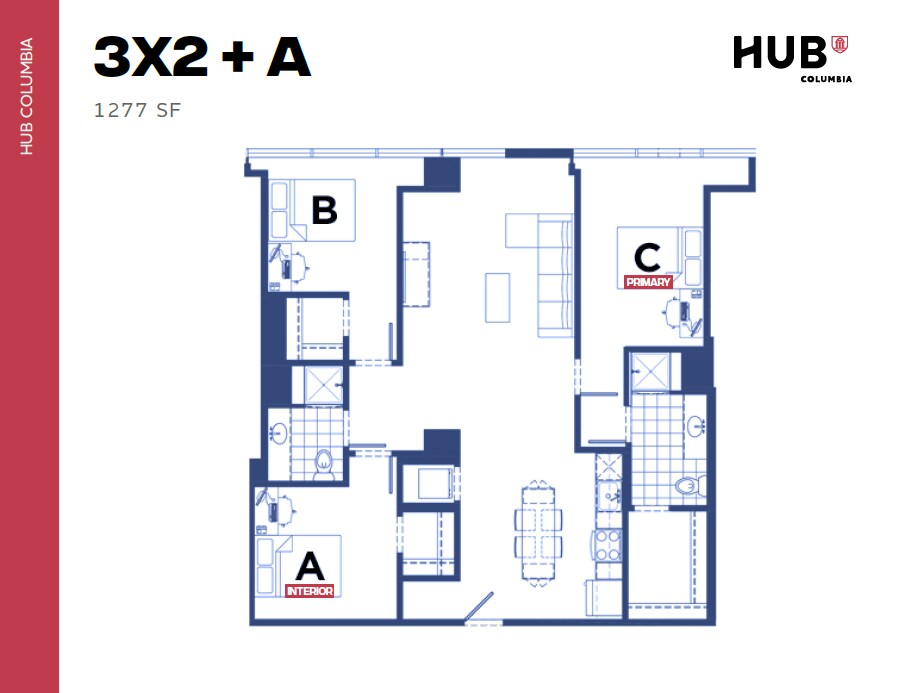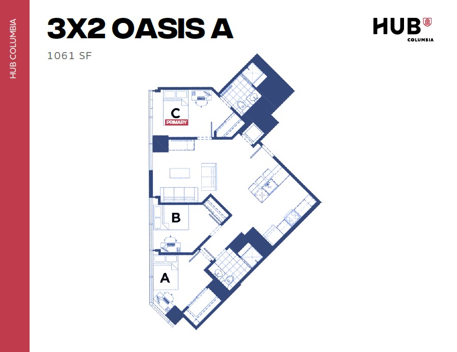 Hub Columbia in Columbia, SC is ready for you to visit. This community can be found in Columbia on Main St in the Main Street District area. The leasing staff is waiting to show you all that this community has to offer. Get a head start on moving now. Contact or stop by Hub Columbia to find out current pricing!