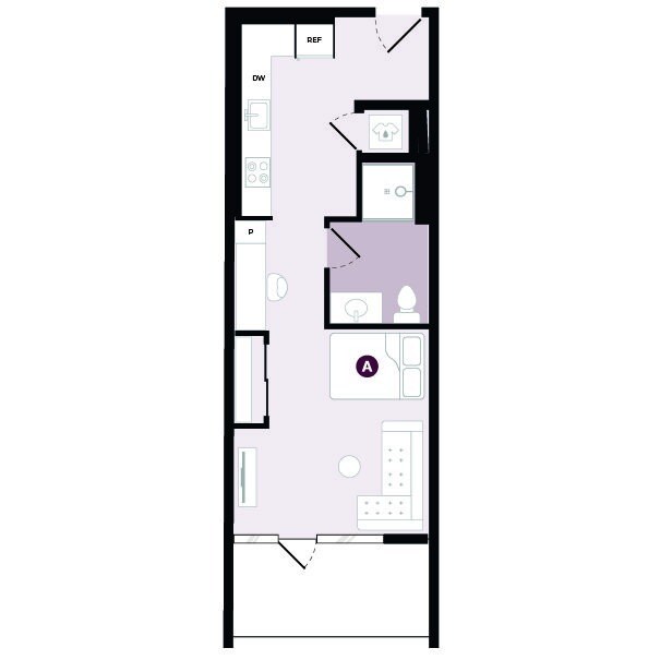 Studio A - Plano Unidad de apartamento: Standard, Single-PrivateModelo de apartamento: Studio AEstudio, 1 Baño, 489-501 sq ftDisponible August 21, 2026Unidad de apartamento: Standard, Single-Private, BalconyModelo de apartamento: Studio AEstudio, 1 Baño, 489-501 sq ftDisponible August 21, 2026Murphy A