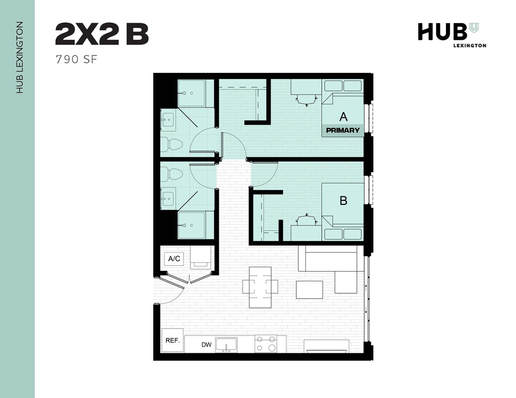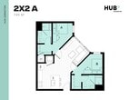 2x2 - Plano 2 Unidad de apartamento: PrimaryModelo de apartamento: 2x22 Dormitorios, 2 Baños, 745-790 sq ftDisponible Ahora2x2 VIP