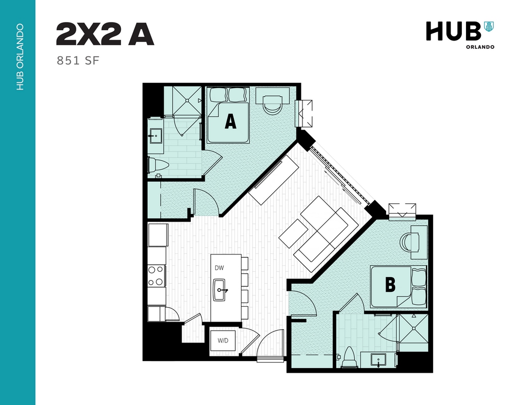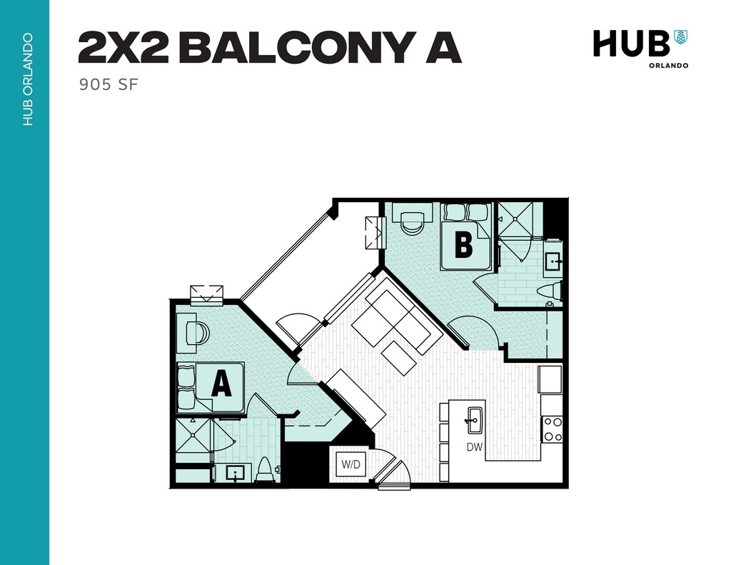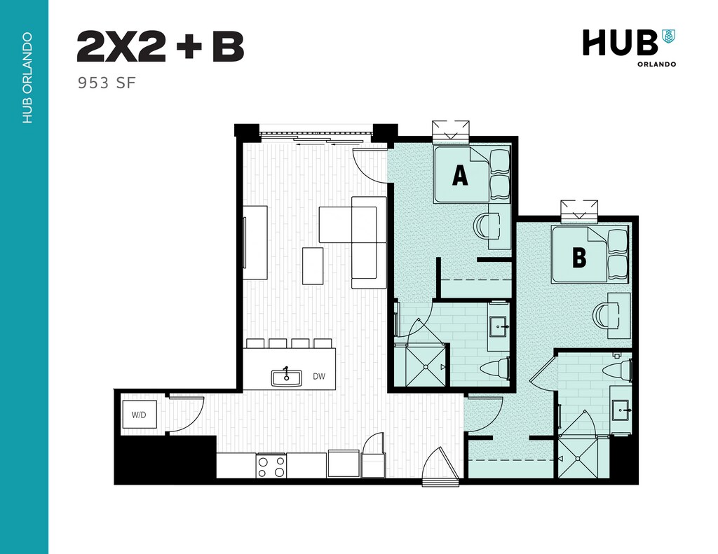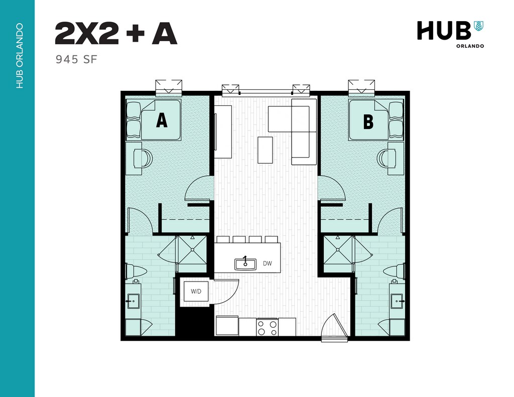 Hub Orlando ofrece apartamentos de 2 a 4 Dormitorios desde $1,105 con 851–1,377 pies cuadrados. Aquí está el precio actual y la disponibilidad: