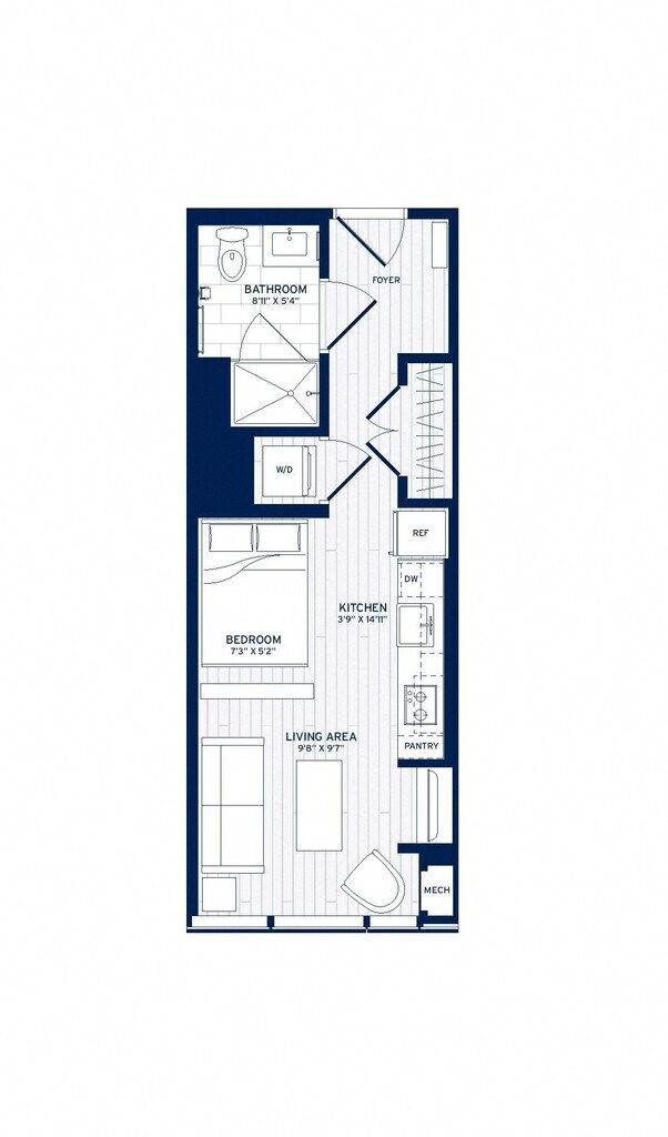 Estudio, 1 Baño, 475 pies²Precio Mensual TotalDisponible AhoraEl más grandeEsta opción tiene las unidades más grandes para este modeloGalería del Modelo