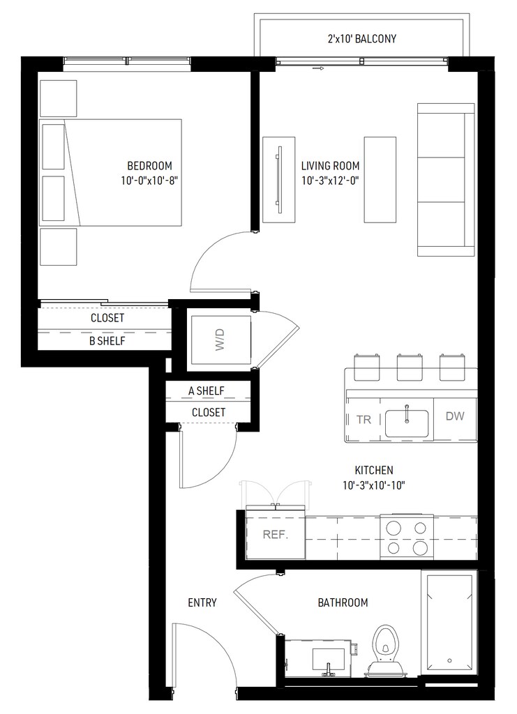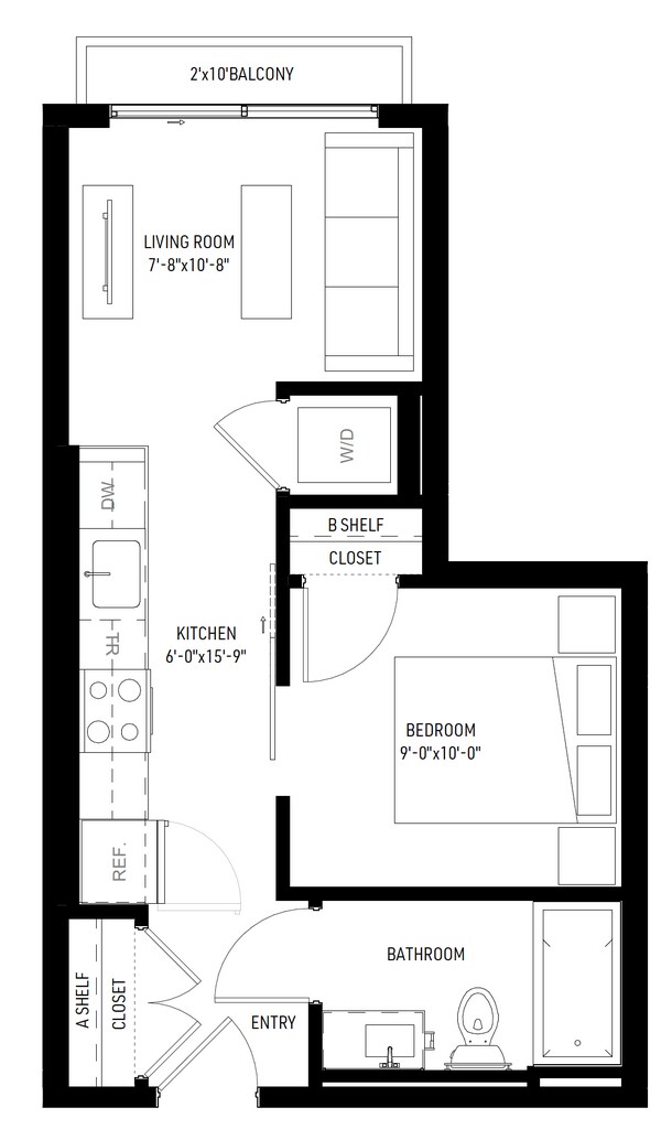 1 Dormitorio, 1 Baño, 610 pies²Precio Mensual TotalDisponible AhoraGalería del Modelo