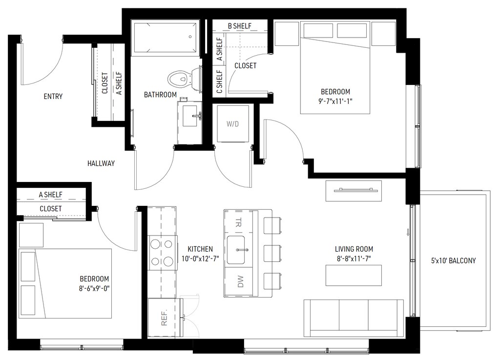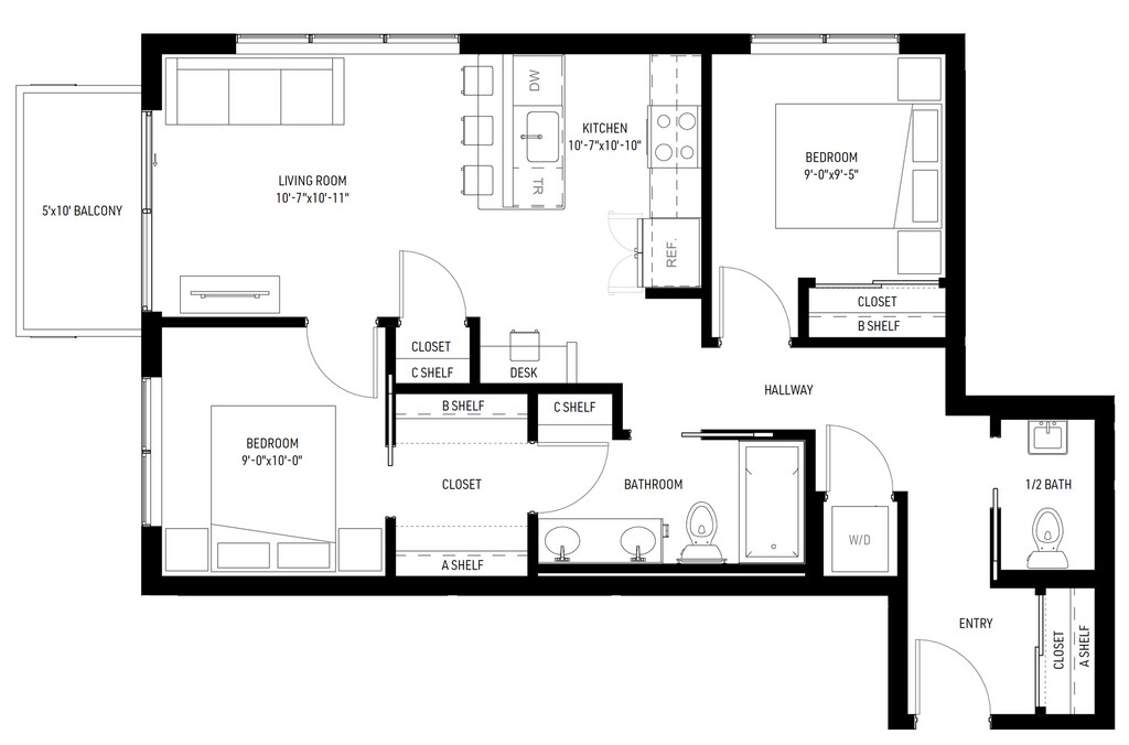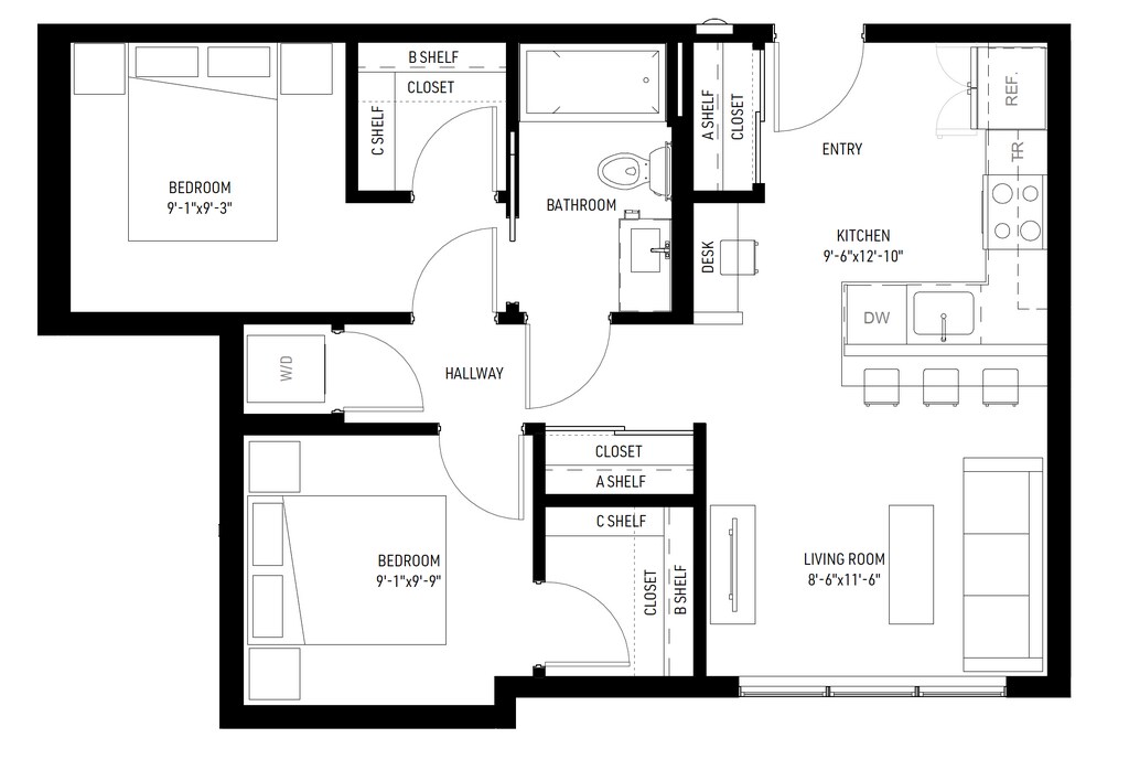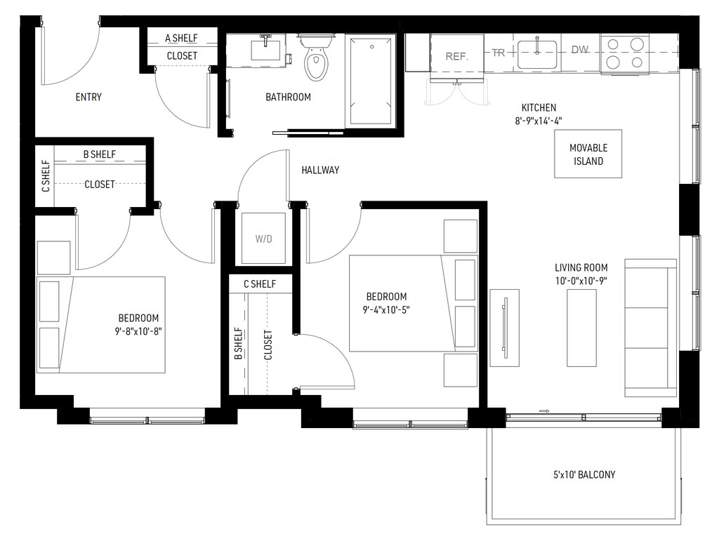 Helena - Plano 2 Unidad de apartamento: 317Modelo de apartamento: Helena$1,7921 Dormitorio, 1 Baño, 610 sq ftDisponible AhoraHuckleberry