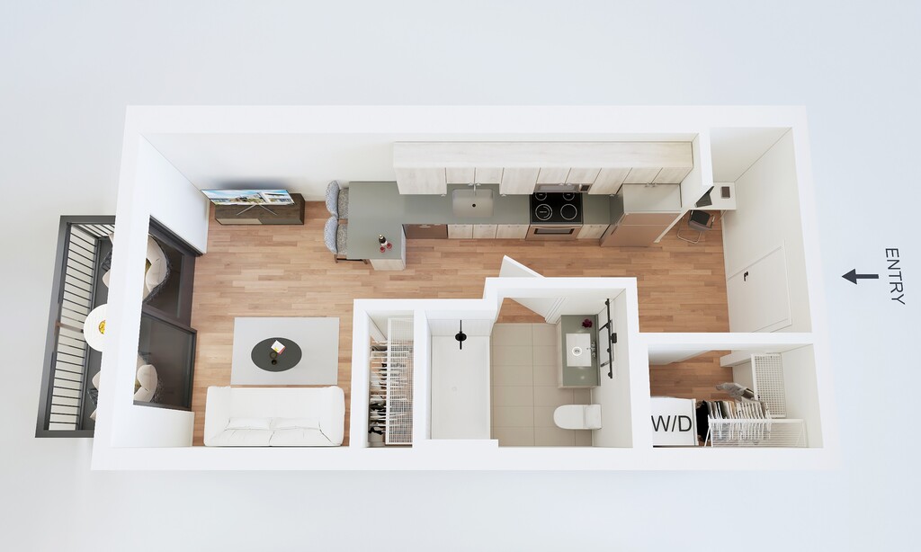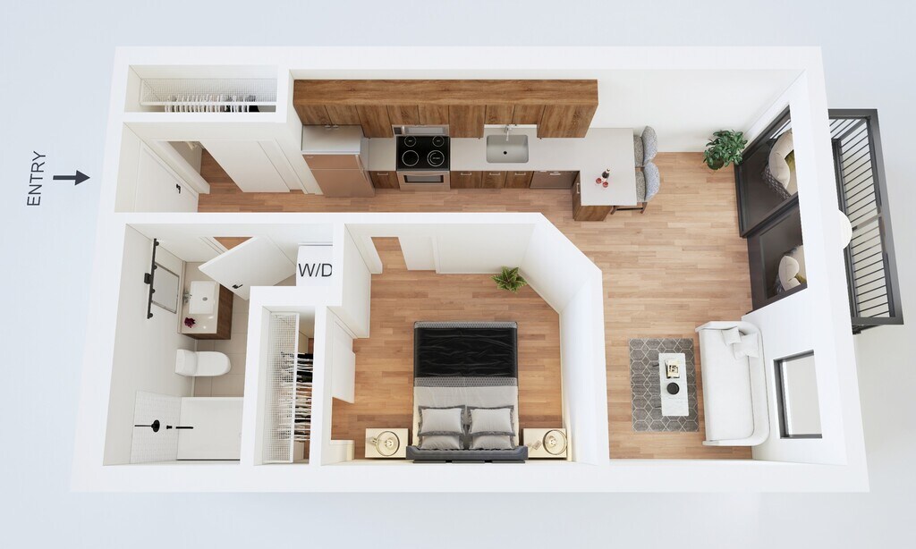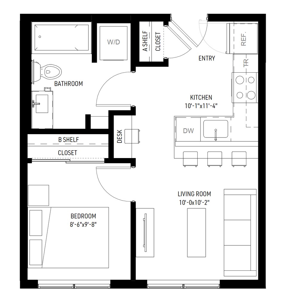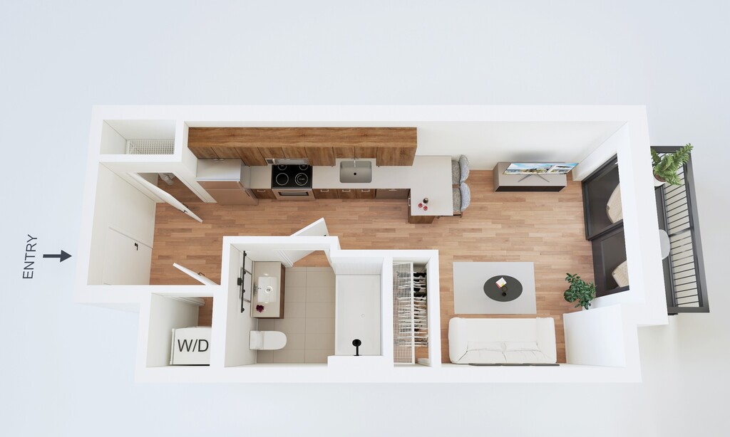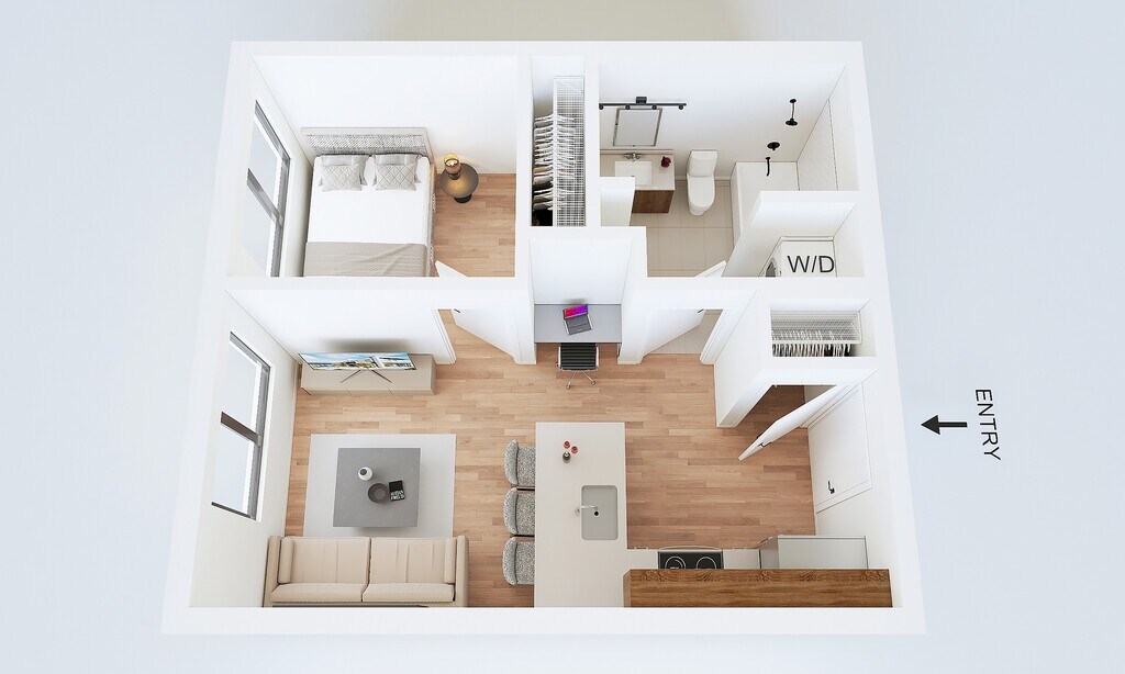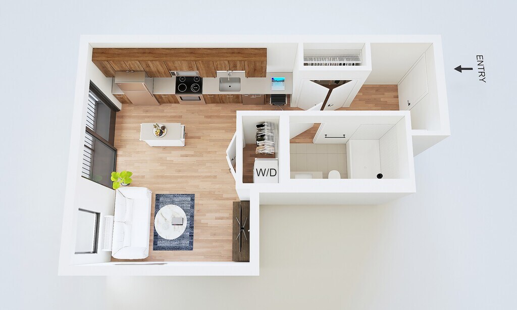 Estudio, 1 Baño, 455 pies²El más grandeEsta opción tiene las unidades más grandes para este modeloGalería del Modelo