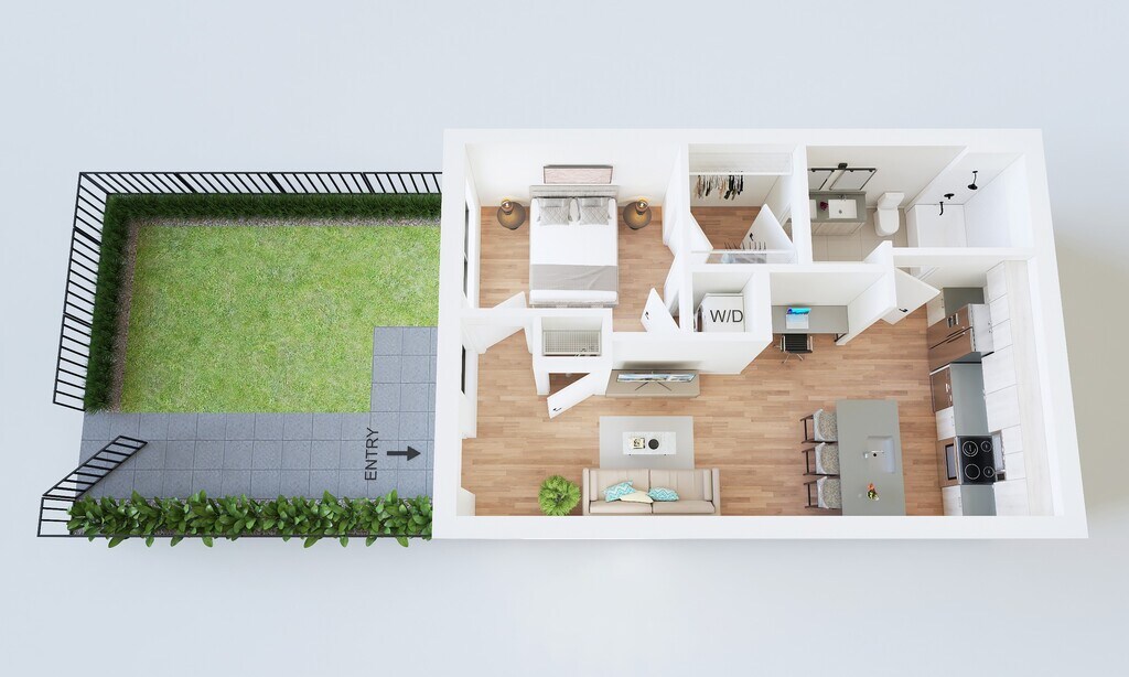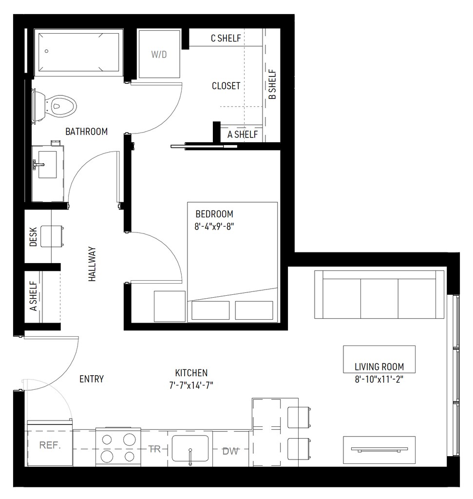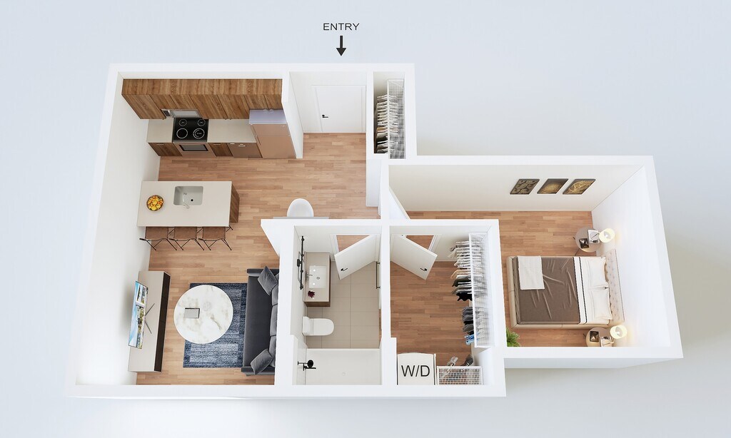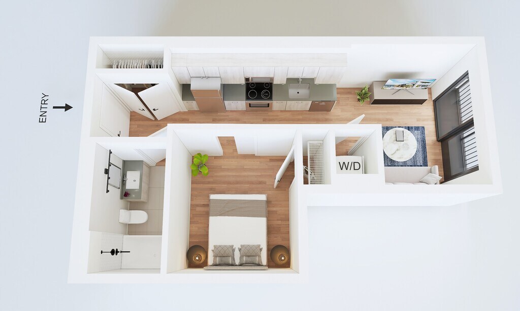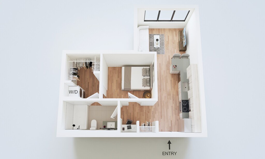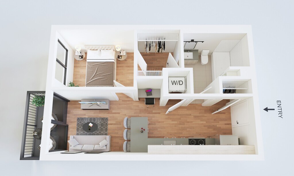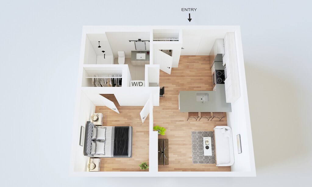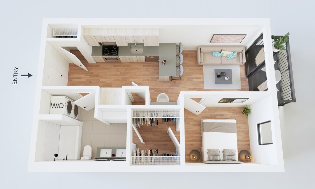 1 Dormitorio, 1 Baño, 505 pies²Precio Mensual TotalDisponible AhoraGalería del Modelo
