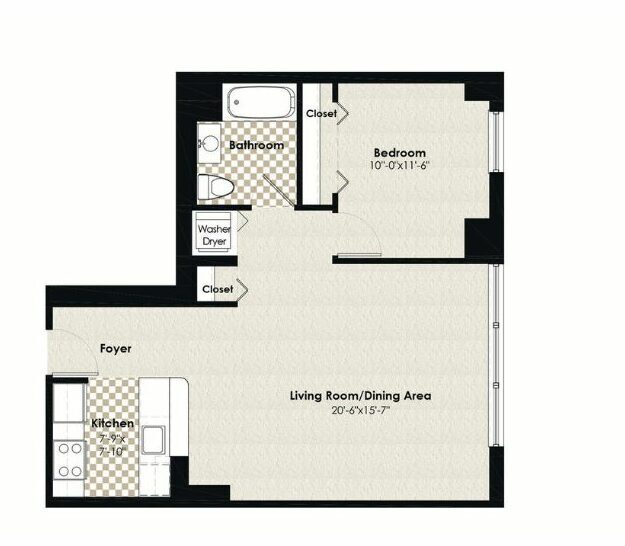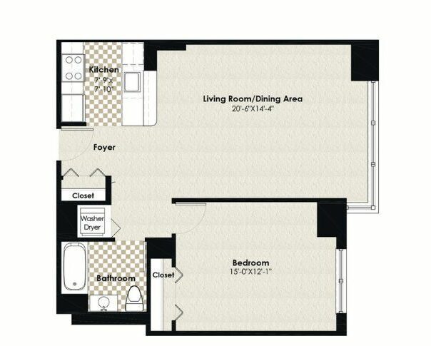 1 Dormitorio, 1 Baño, 724 pies²Disponible AhoraGalería del Modelo