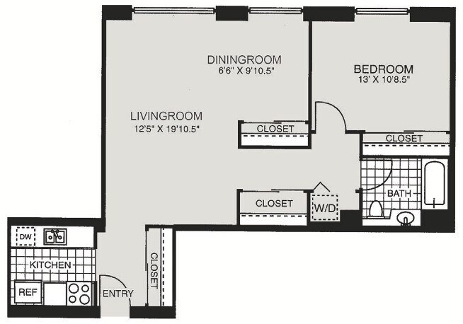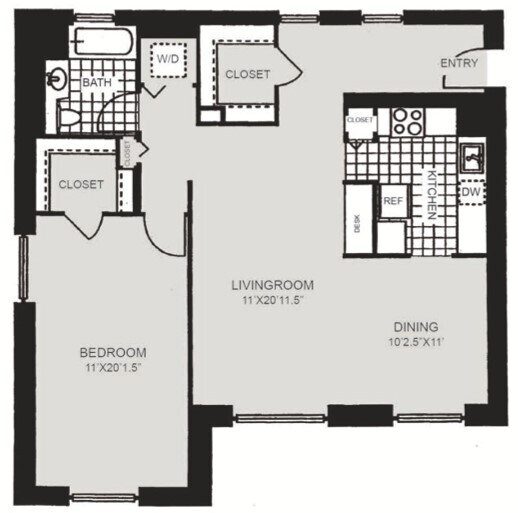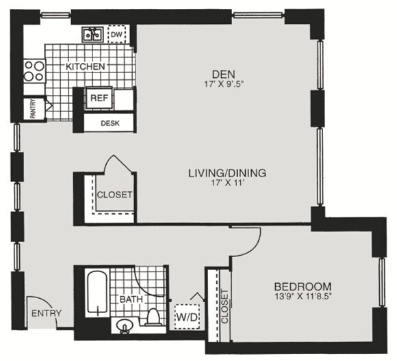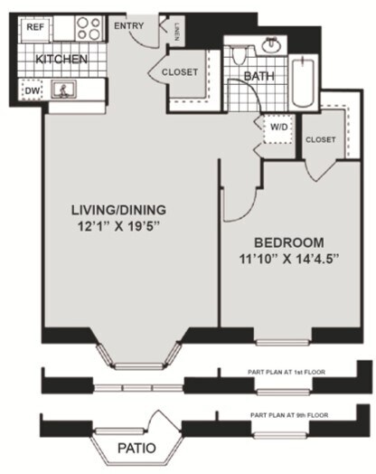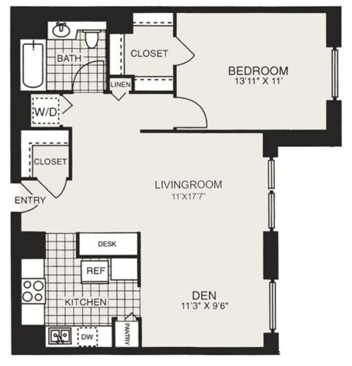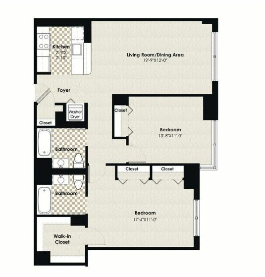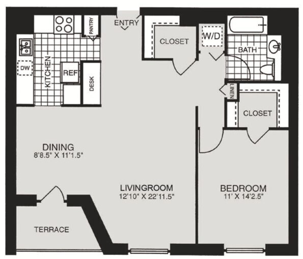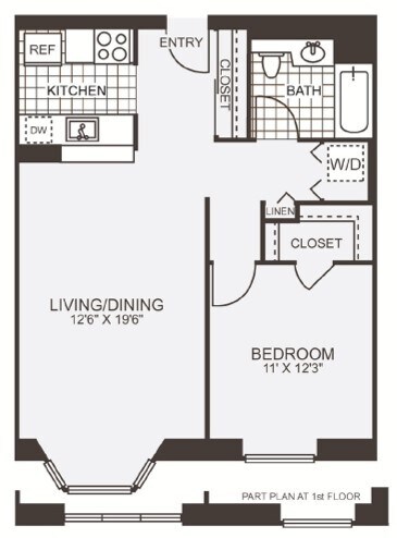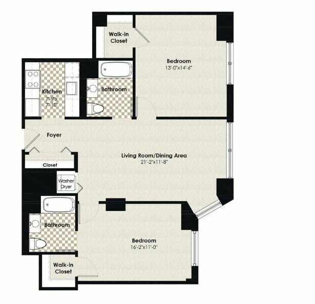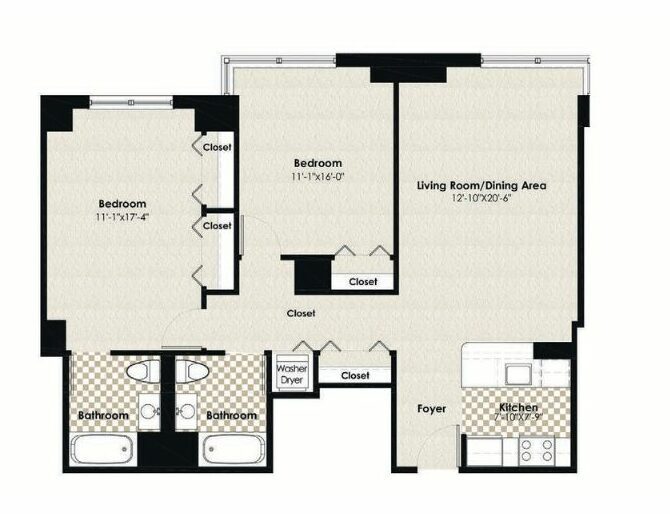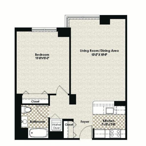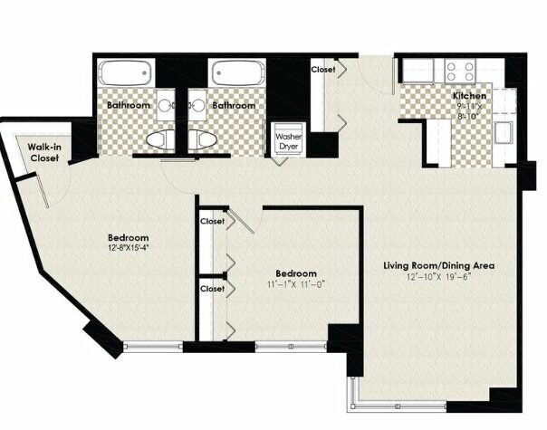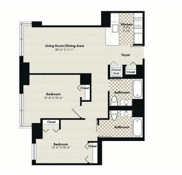 Modelo de apartamento: HPN AA1$2,5001 Dormitorio, 1 Baño, 684 sq ftDisponible Ahora![]()
