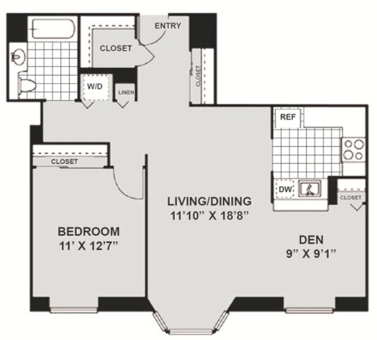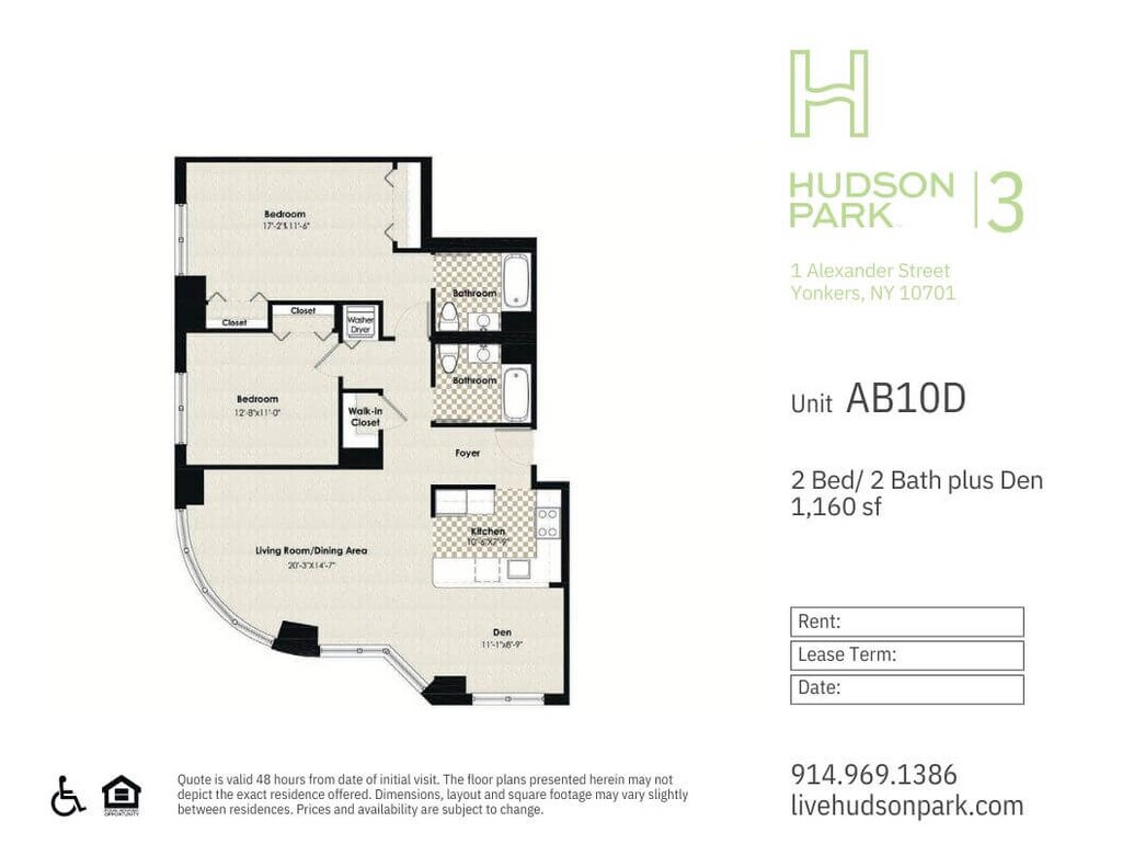 Modelo de apartamento: HPN AA2$2,6001 Dormitorio, 1 Baño, 708 sq ftDisponible Ahora![]()