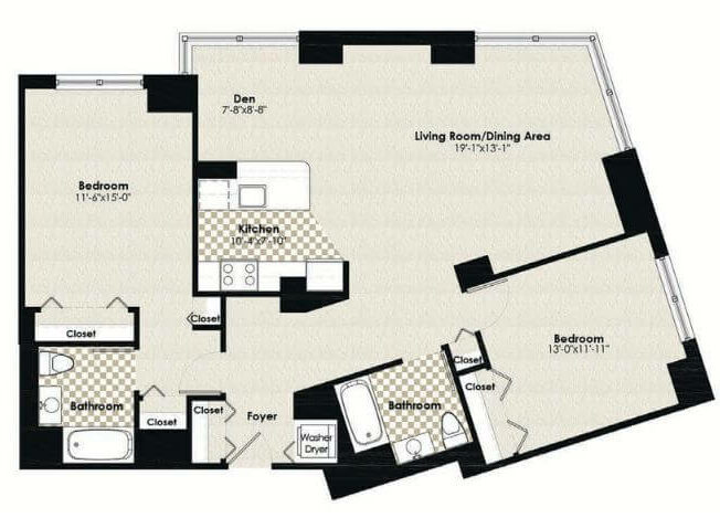 Modelo de apartamento: HPN AA9Desde $2,6001 Dormitorio, 1 Baño, 763 sq ftDisponible Ahora![]()