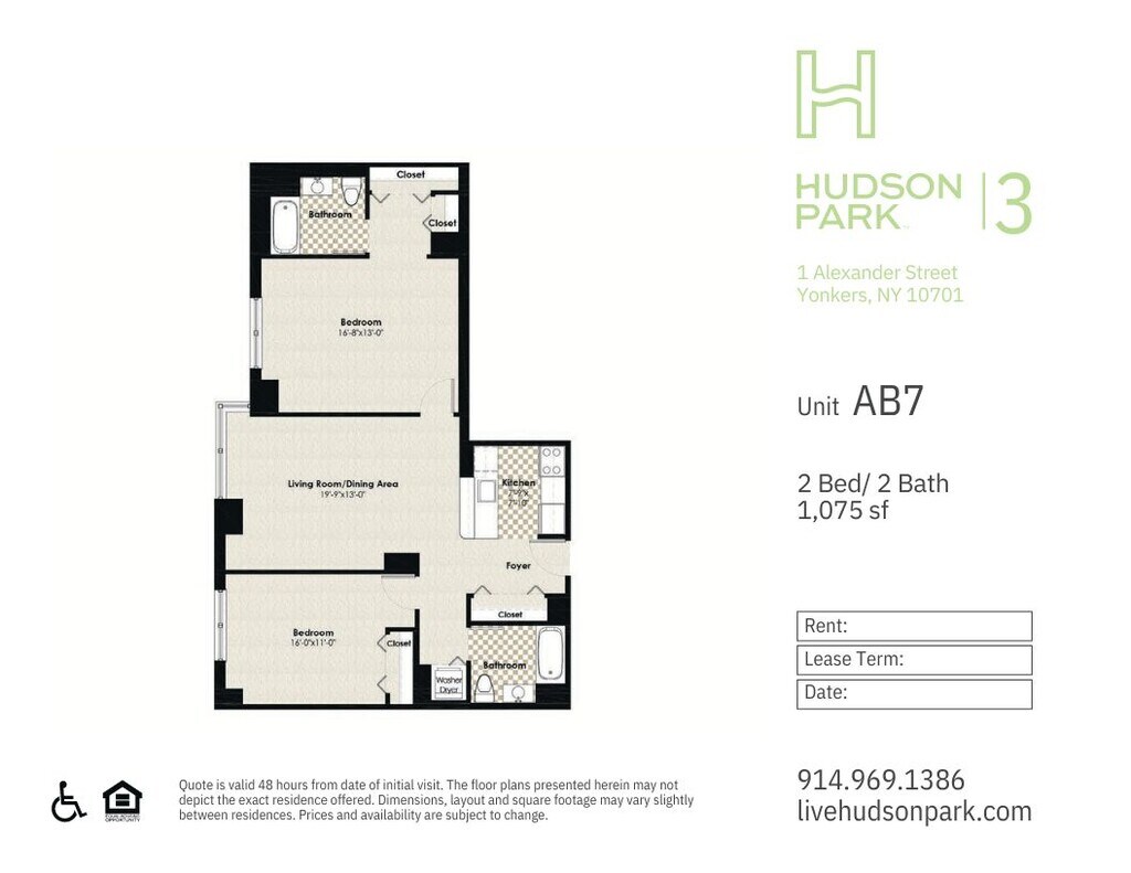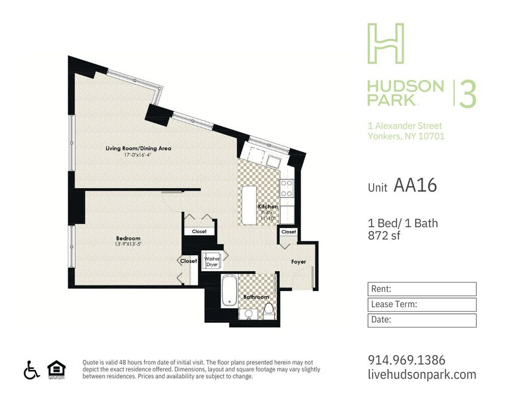 Modelo de apartamento: HPN AA4$2,6001 Dormitorio, 1 Baño, 724 sq ftDisponible Ahora![]()