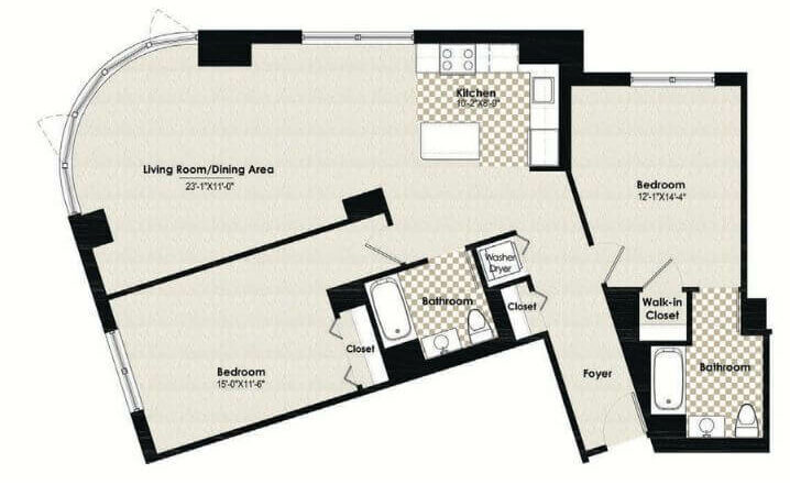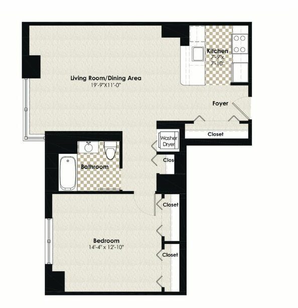 1 Dormitorio, 1 Baño, 763 pies²Disponible AhoraGalería del Modelo
