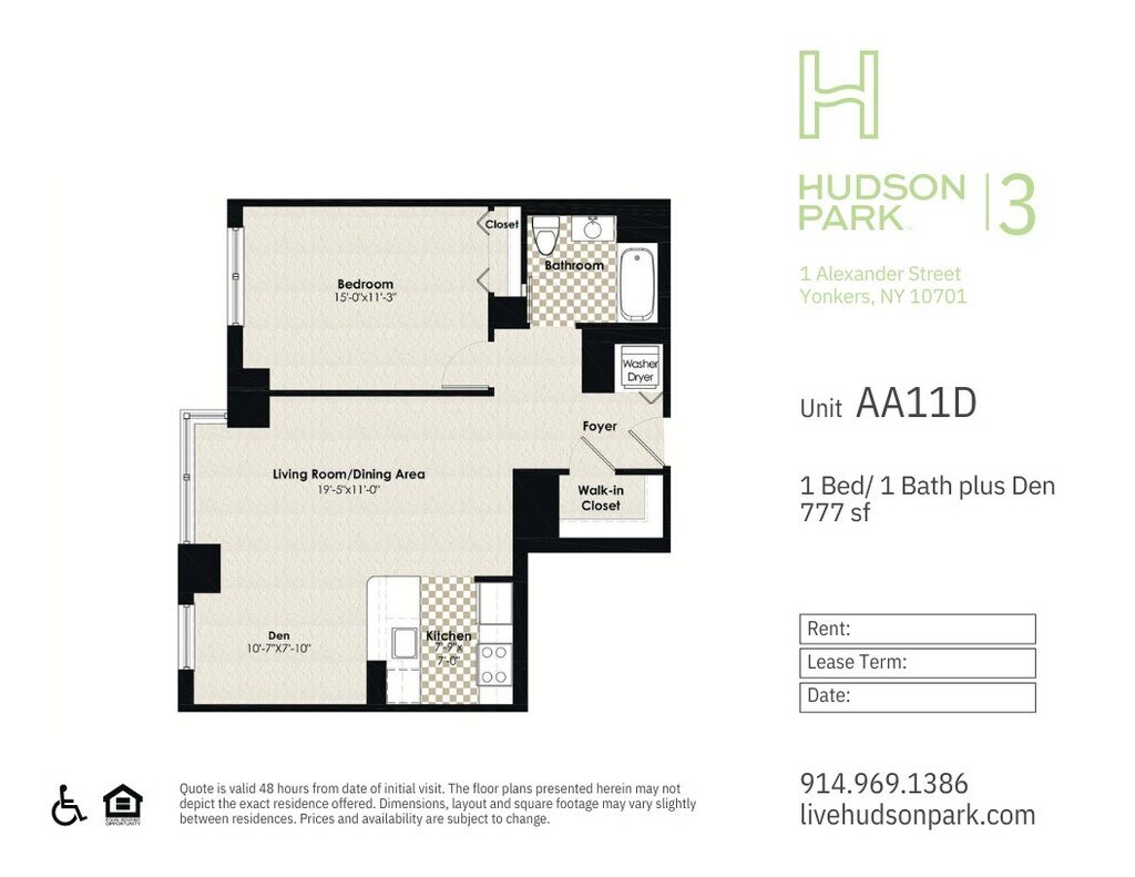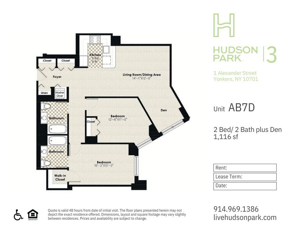 Modelo de apartamento: HPN AA7D$2,6001 Dormitorio, 1 Baño, 742 sq ftDisponible November 21, 2025![]()