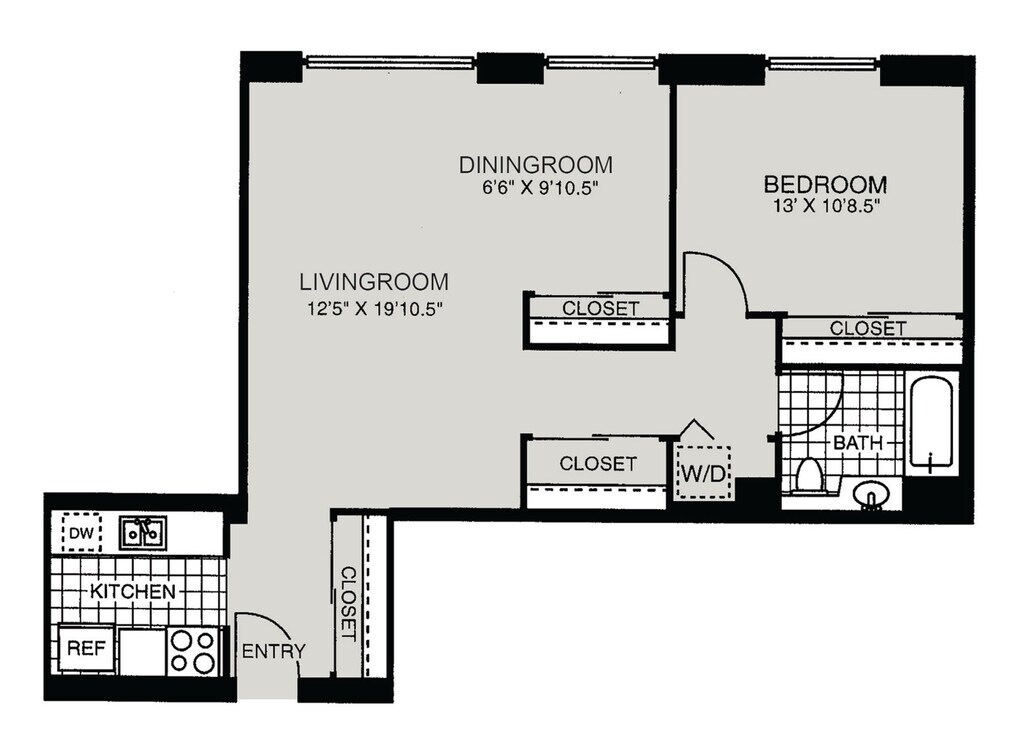 1 Dormitorio, 1 Baño, 905 pies²Galería del Modelo