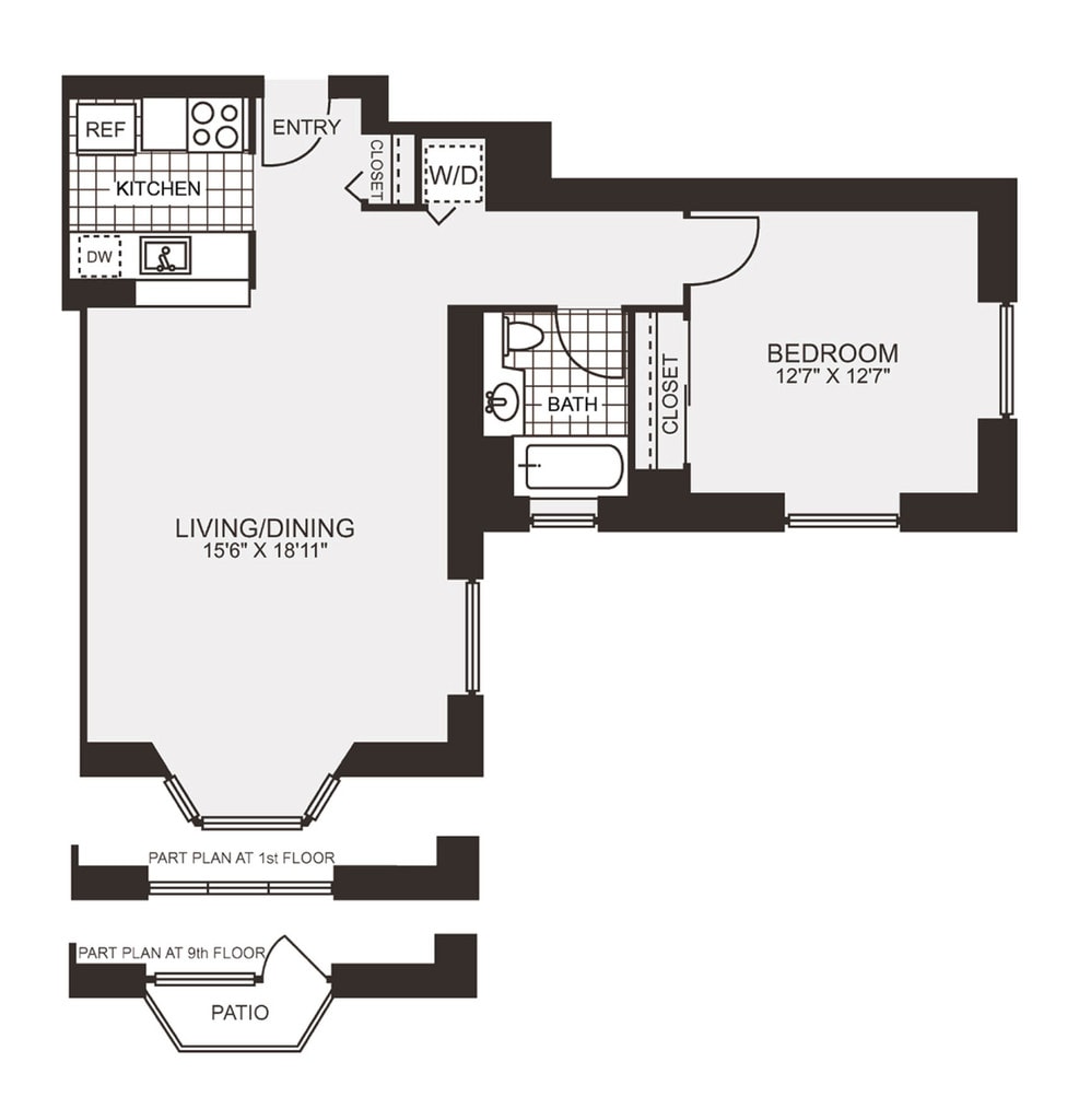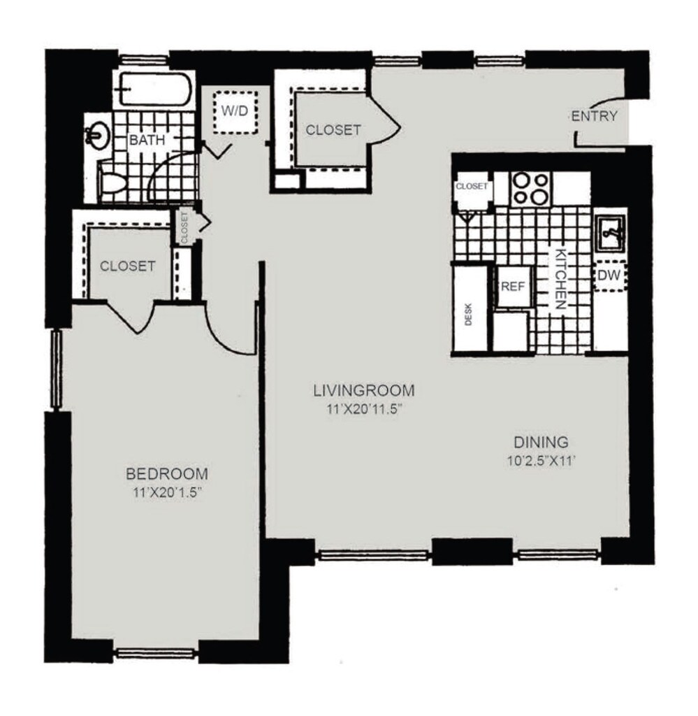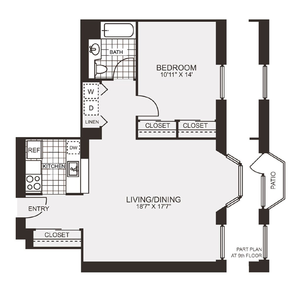 1 Dormitorio, 1 Baño, 847 pies²Galería del Modelo