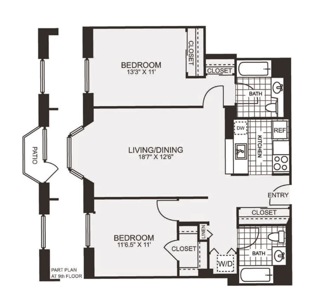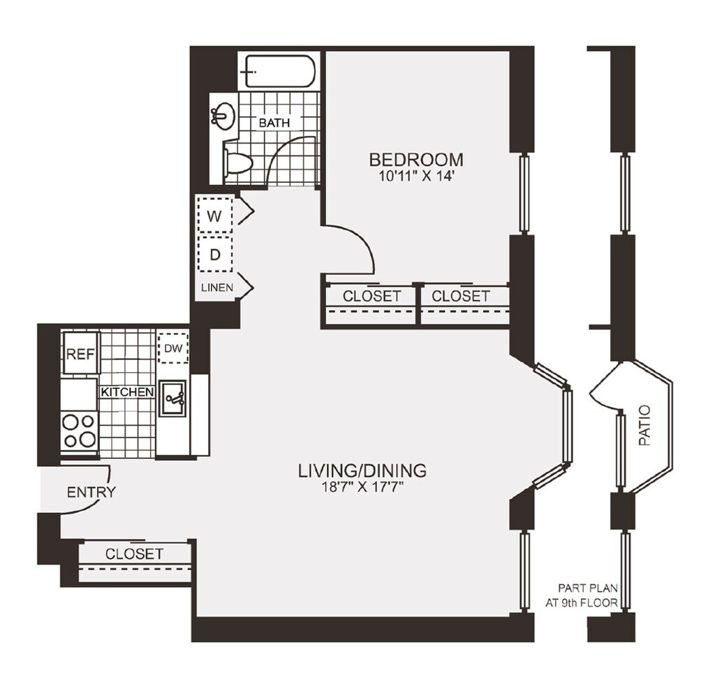 Fecha Disponibilidad Unidad Pies² No Disponible One bedroom 753 pies² Modelo de apartamento: One bedroom1 Dormitorio, 1 Baño, 753 sq ftNo Disponible![]()