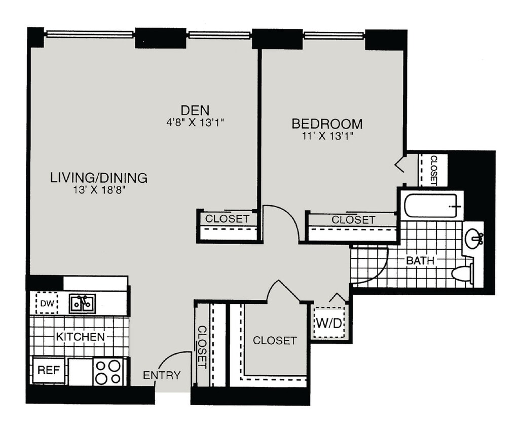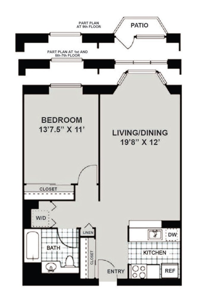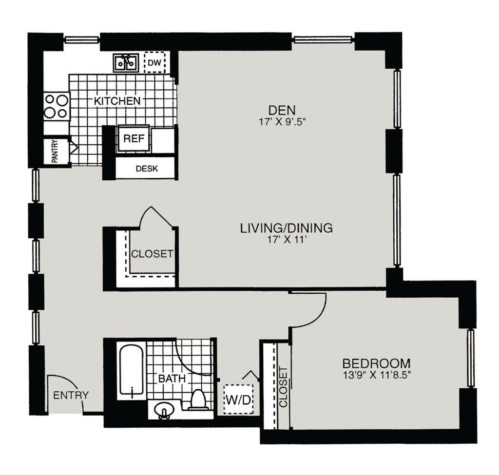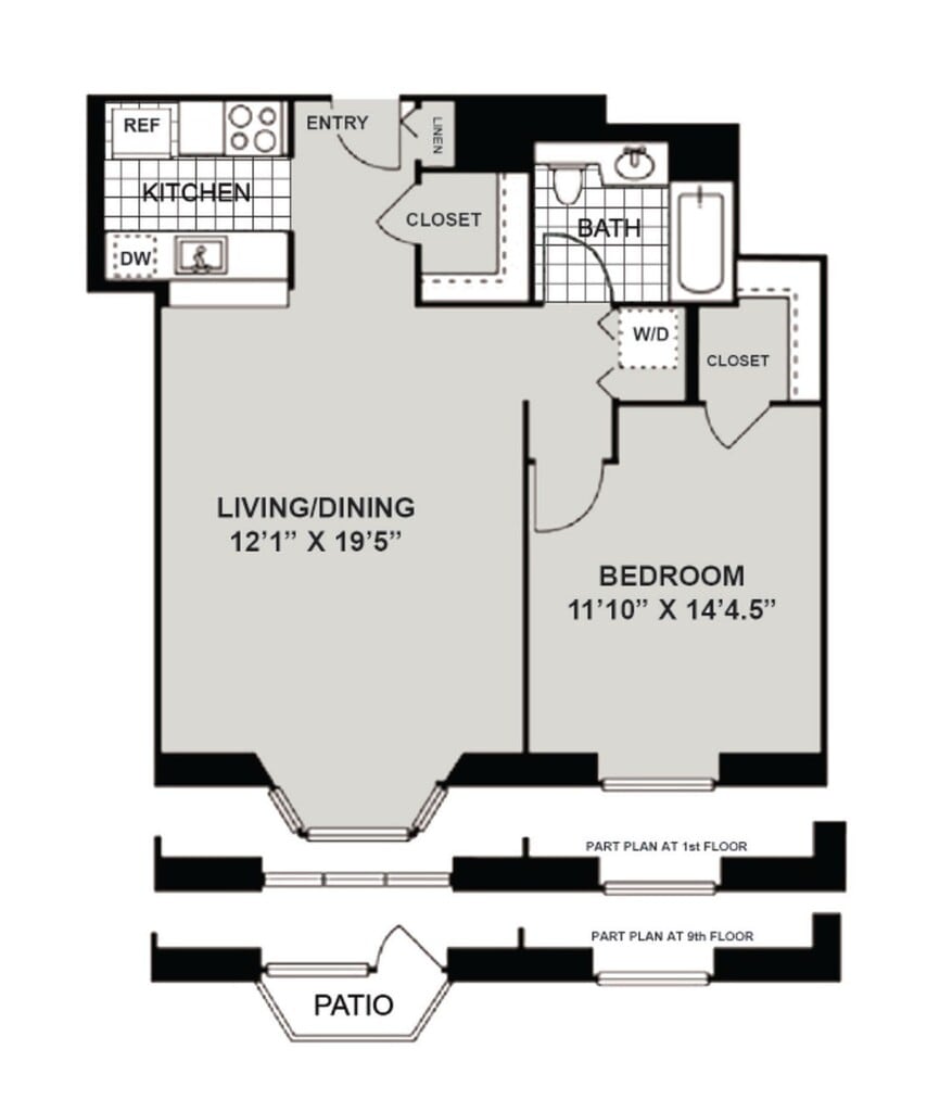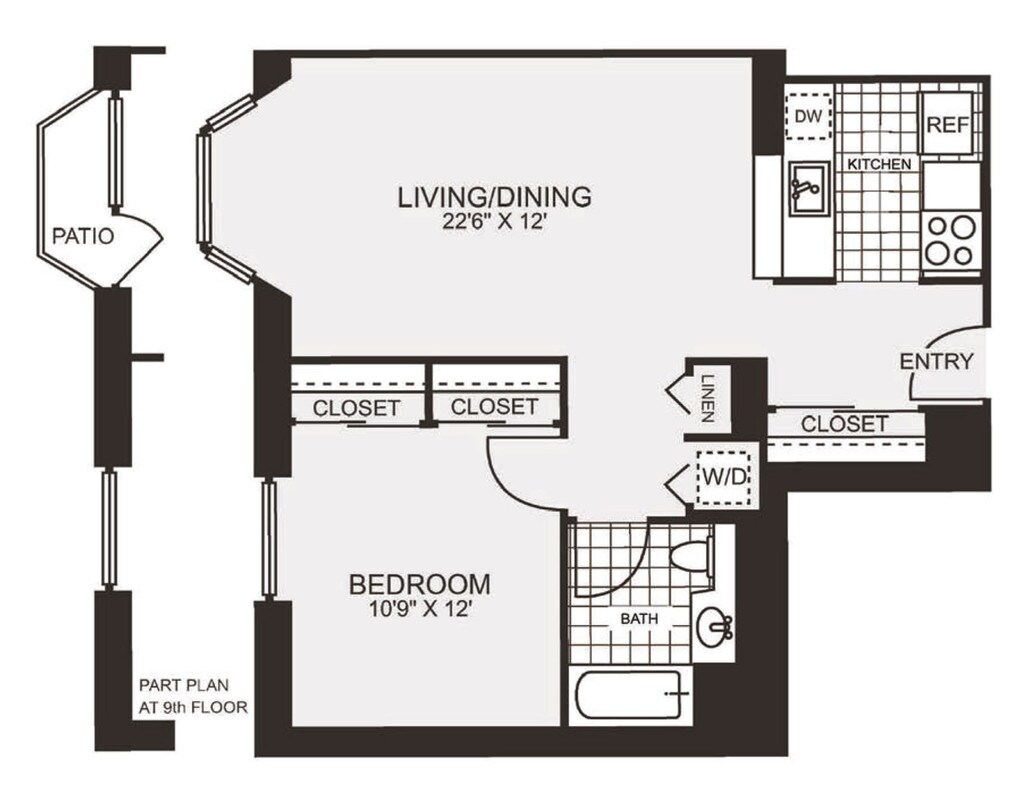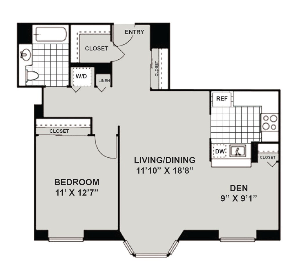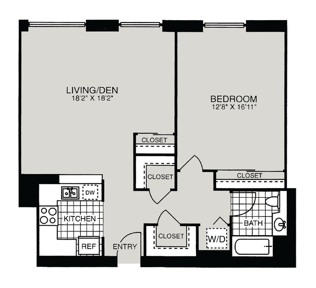 1 Dormitorio, 1 Baño, 840 pies²Detalles de Diponibilidad