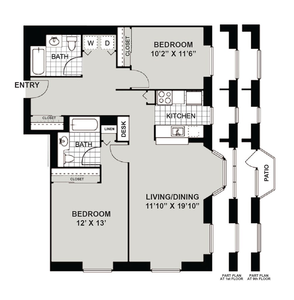 Fecha Disponibilidad Unidad Pies² No Disponible One bedroom 867 pies² Modelo de apartamento: One bedroom1 Dormitorio, 1 Baño, 867 sq ftNo Disponible![]()