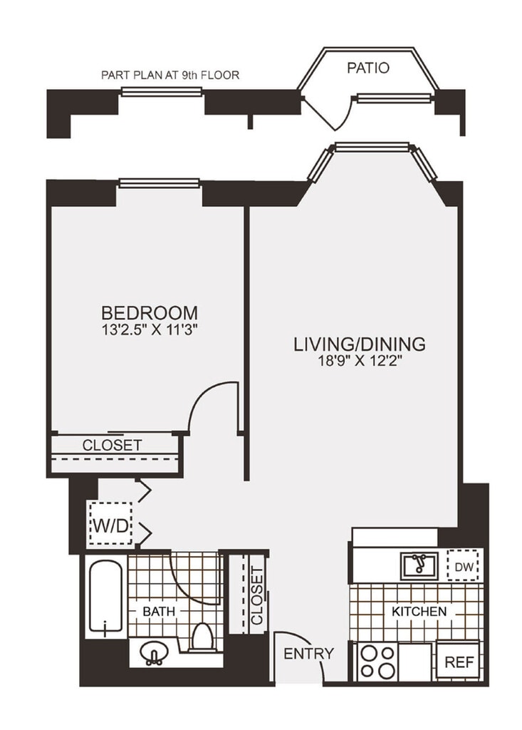 1 Dormitorio, 1 Baño, 801 pies²Galería del Modelo