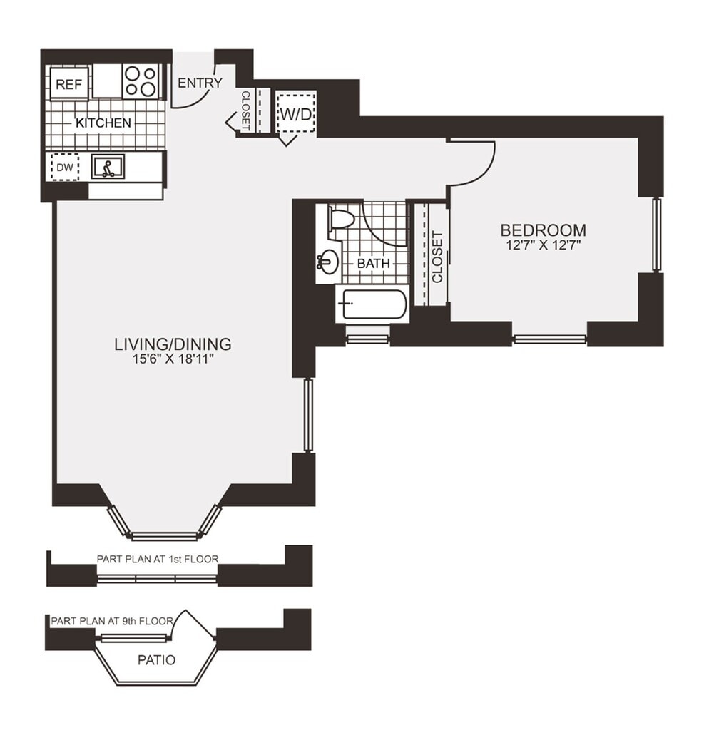 1 Dormitorio, 1 Baño, 684 pies²Galería del Modelo
