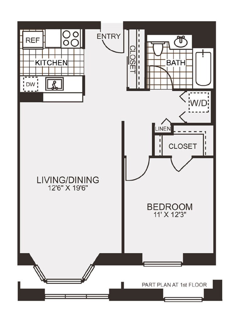 1 Dormitorio, 1 Baño, 812 pies²Galería del Modelo