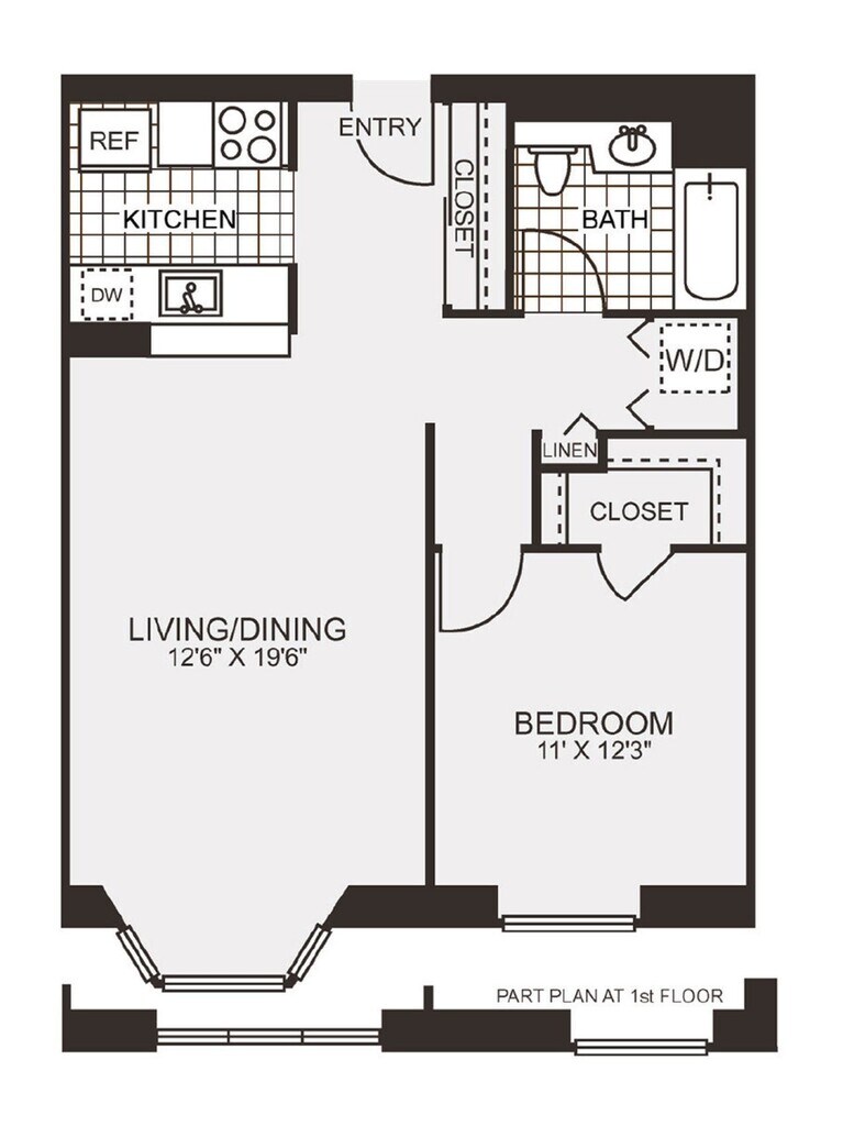 1 Dormitorio, 1 Baño, 685 pies²Galería del Modelo