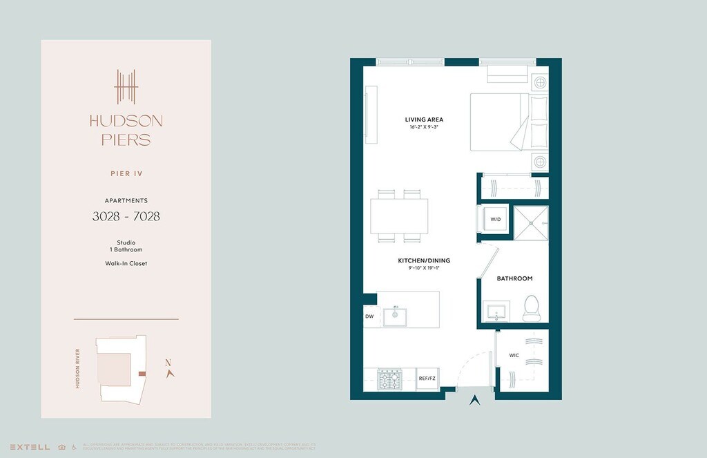 Hudson Piers ofrece apartamentos de Estudio a 3 Dormitorios desde $2,329 con 500–1,362 pies cuadrados. Aquí está el precio actual y la disponibilidad: