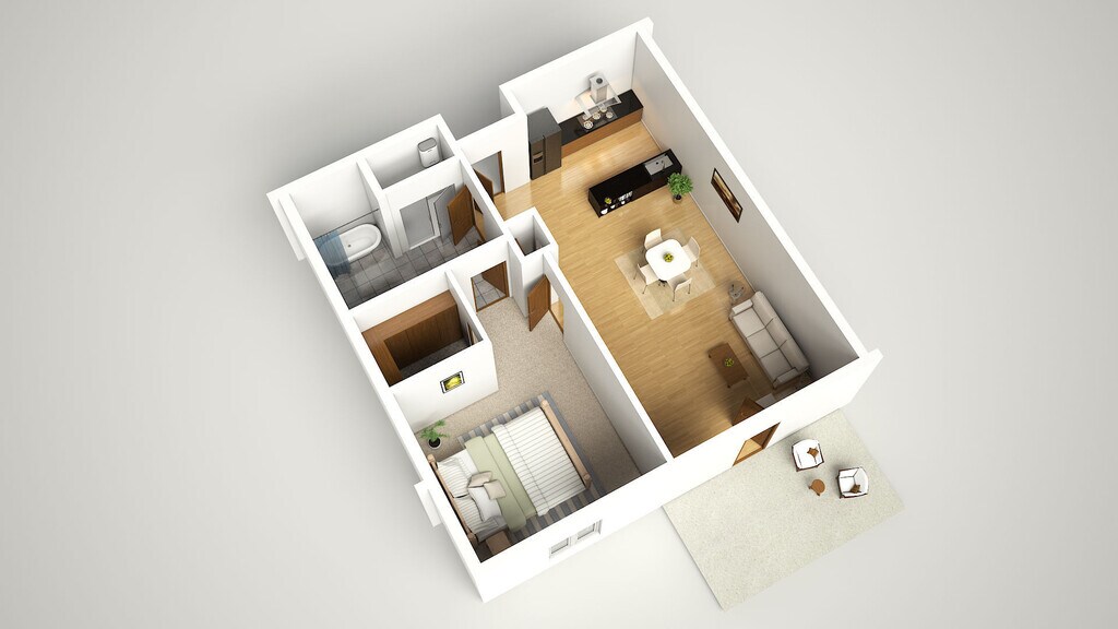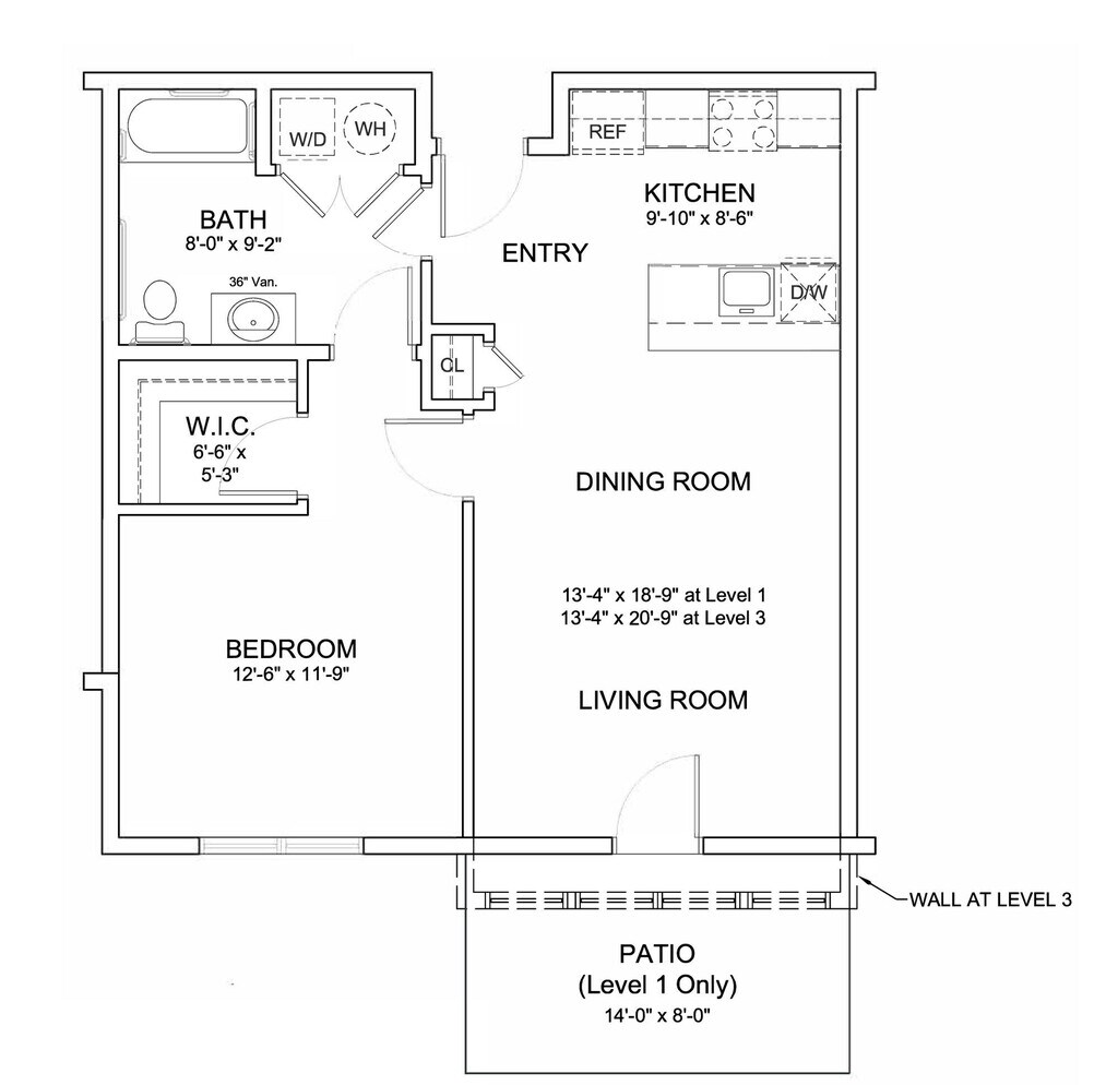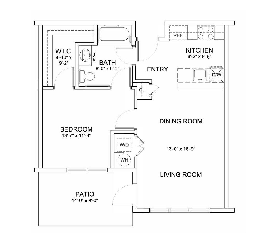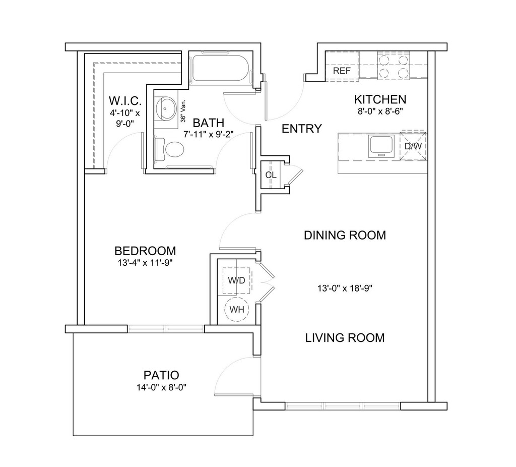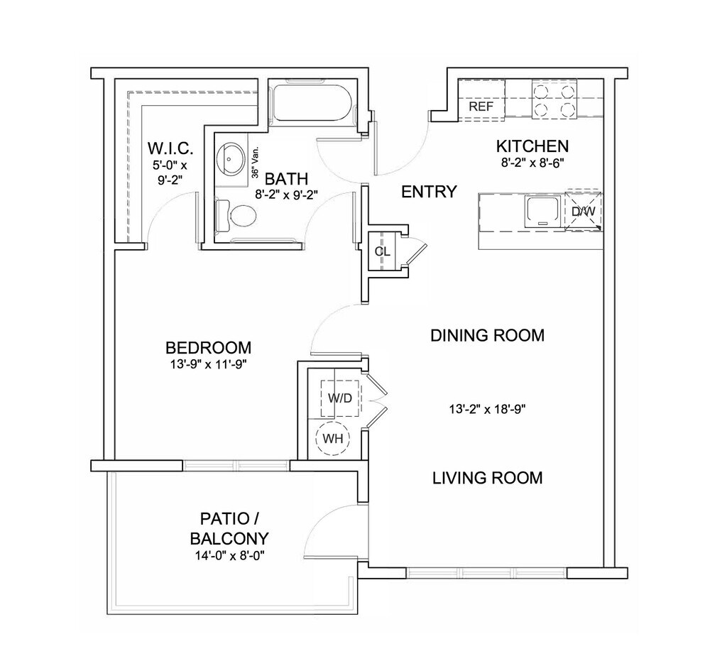 1 Dormitorio, 1 Baño, 714 pies²Disponible AhoraGalería del Modelo