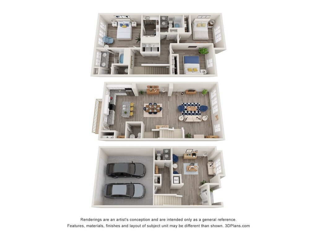 Modelo de apartamento: Hollyhock3 Dormitorios, 2.5 Baños, 1742 sq ftDisponible Ahora![]()