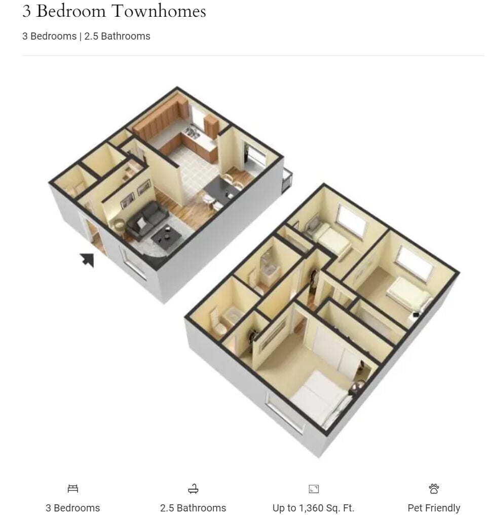Huffman Mill Townhomes ofrece apartamentos de 1 a 3 Dormitorios desde $999 con 780–1,435 pies cuadrados. Aquí está el precio actual y la disponibilidad: