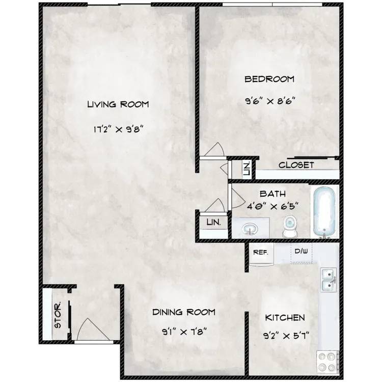 Modelo de apartamento: Hull Flats 1bdr TraditionalDesde $1,0501 Dormitorio, 1 Baño, 650 sq ftDisponible January 6, 2026![]()