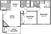 Modelo de apartamento: Preakness - Classic/Upgrade UnitsDesde $1,2702 Dormitorios, 2 Baños, 1000 sq ftDisponible Ahora![]()