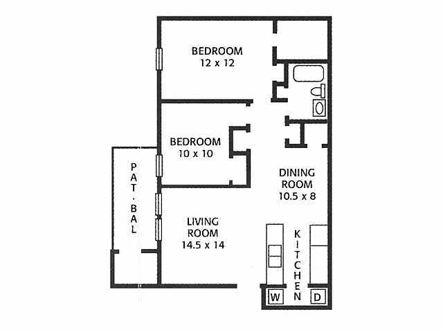 Modelo de apartamento: 2 BD 1 BTH2 Dormitorios, 1 Baño, 980 sq ftNo Disponible![]()