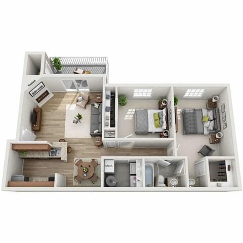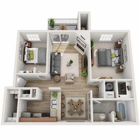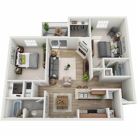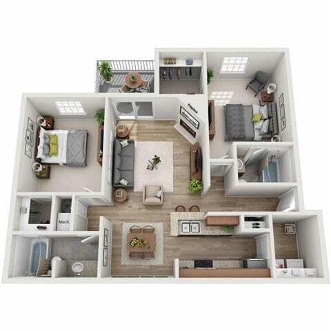 Modelo de apartamento: 2B20Desde $1,2952 Dormitorios, 2 Baños, 1000 sq ftDisponible Ahora![]()