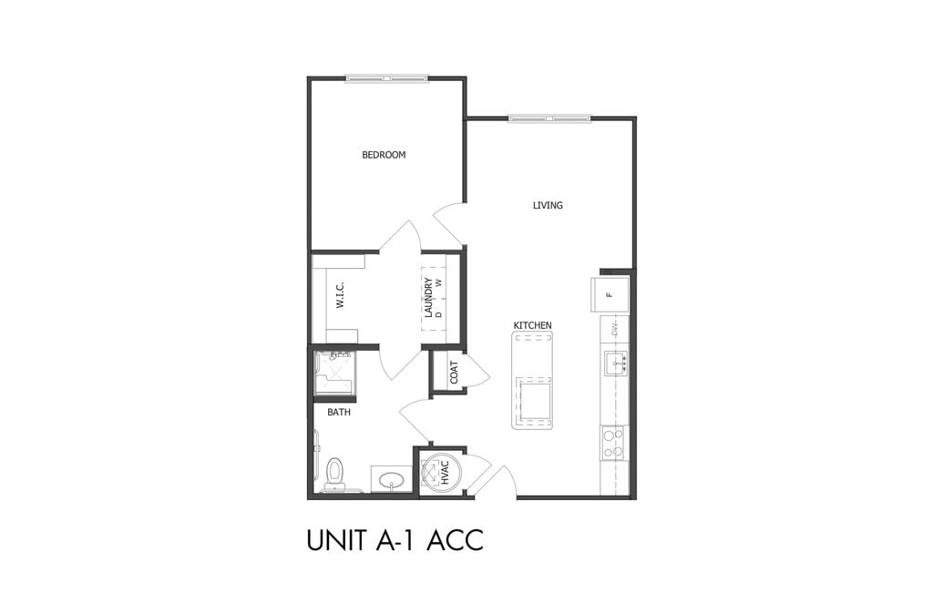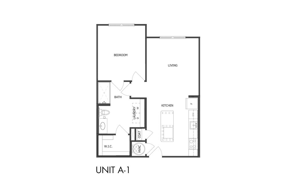 1 Dormitorio, 1 Baño, 705-746 pies²Galería del Modelo