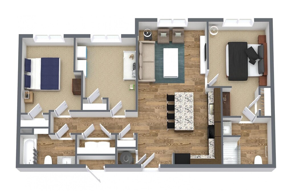 Modelo de apartamento: C$1,8003 Dormitorios, 2 Baños, 1117-1165 sq ftDisponible AhoraC - Plano 1 C - Plano 2