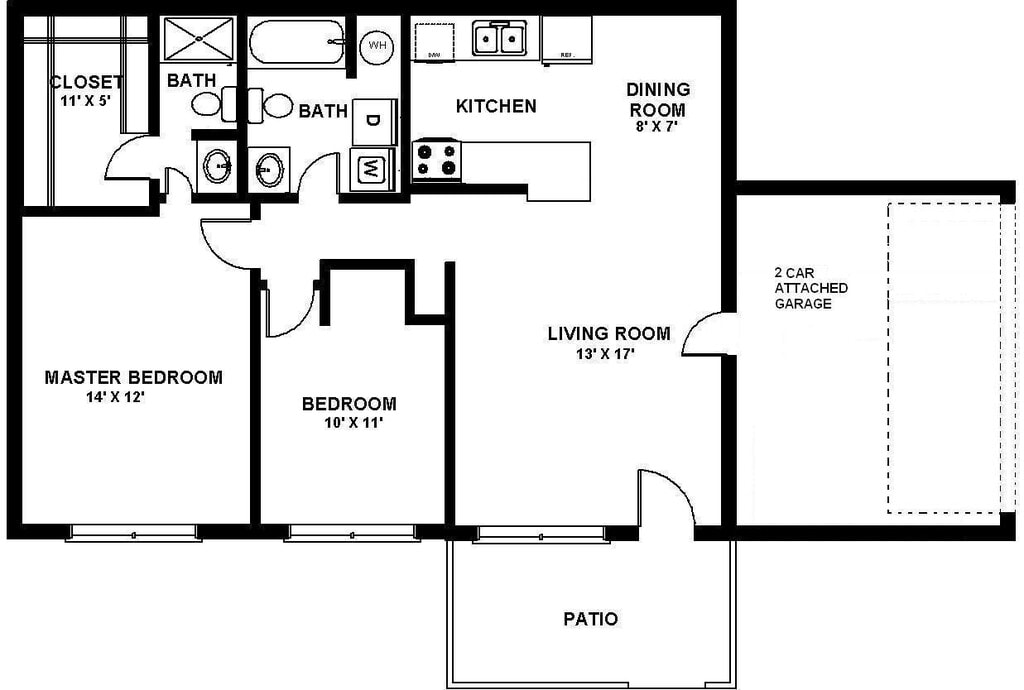 Modelo de apartamento: 2 Bed 1 Bath 1 Car AttachedDesde $1,3132 Dormitorios, 1 Baño, 950 sq ftNo Disponible2 Bed 1 Bath 1 Car Attached - Plano 1 2 Bed 2 Bath 2.5 Car Attached