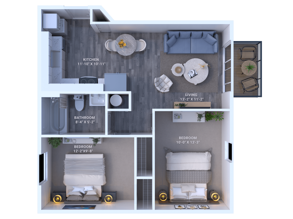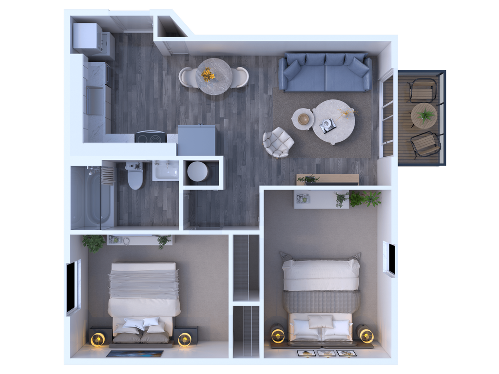 Modelo de apartamento: 1 Bed 1 BathDesde $1,9451 Dormitorio, 1 Baño, 540-625 sq ftDisponible January 1, 2026![]()