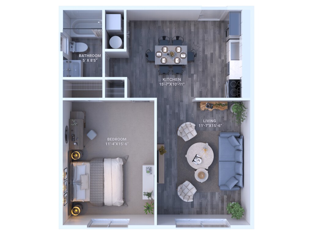 1 Dormitorio, 1 Baño, 540-625 pies²Disponible AhoraGalería del Modelo