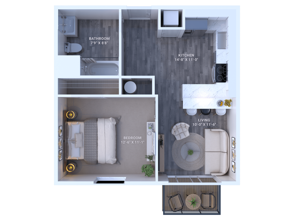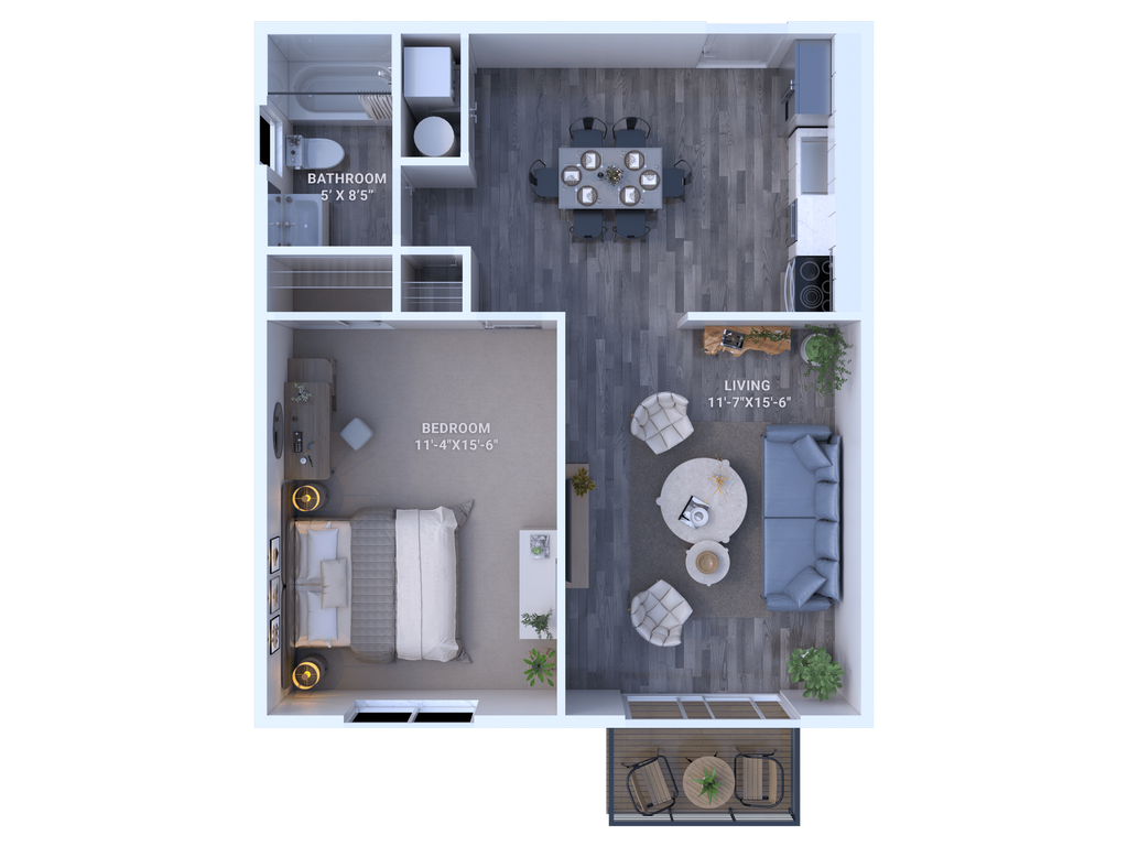 1 Dormitorio, 1 Baño, 540-625 pies²Disponible January 1, 2026Galería del Modelo