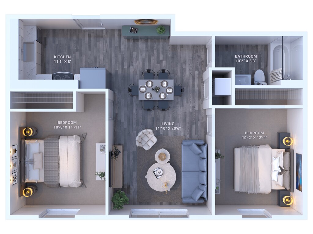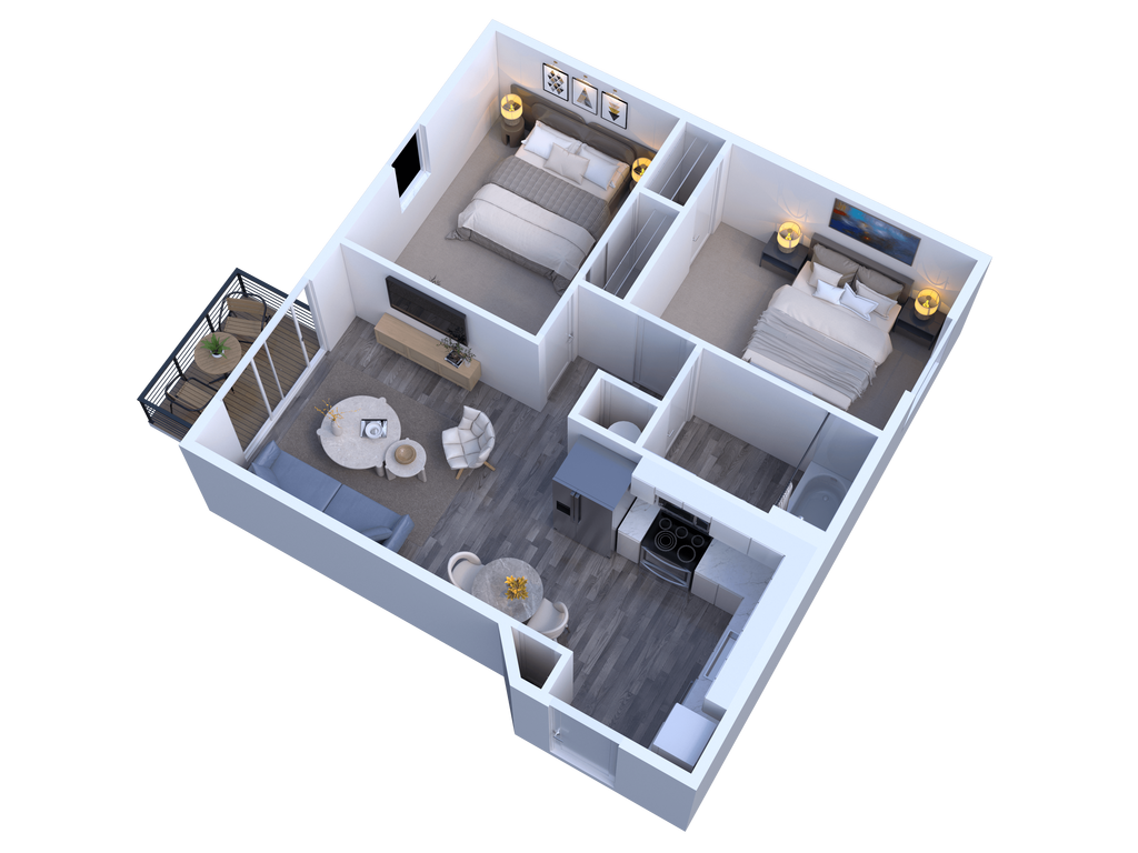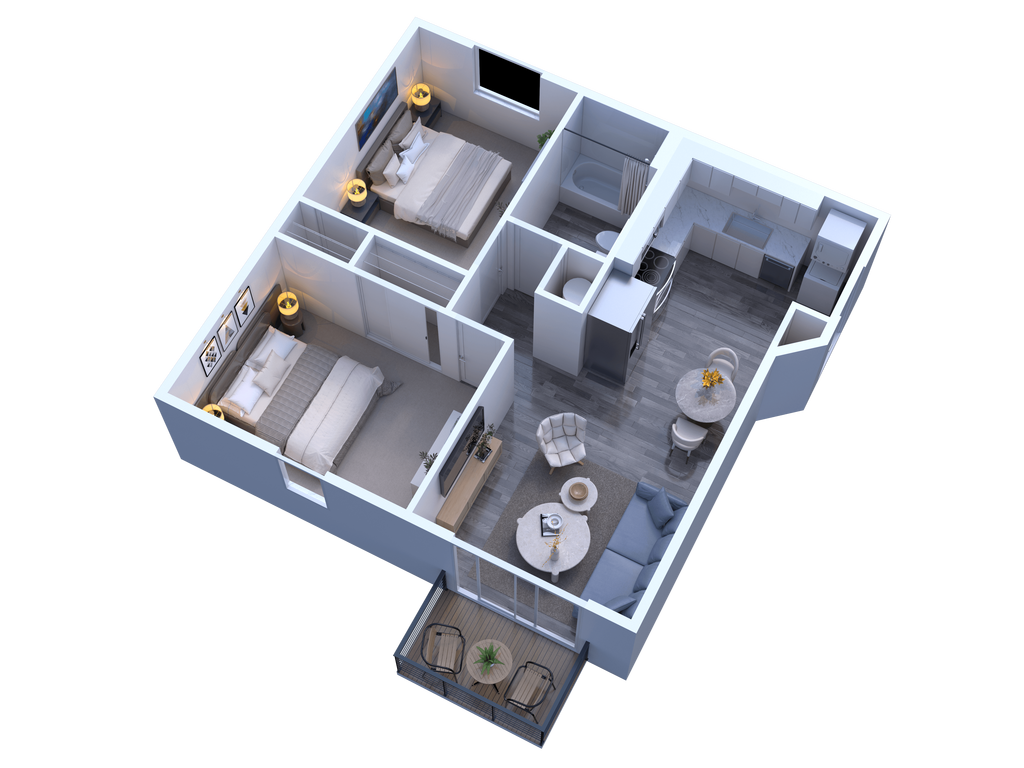 2 Dormitorios, 1 Baño, 650-840 pies²Disponible AhoraGalería del Modelo