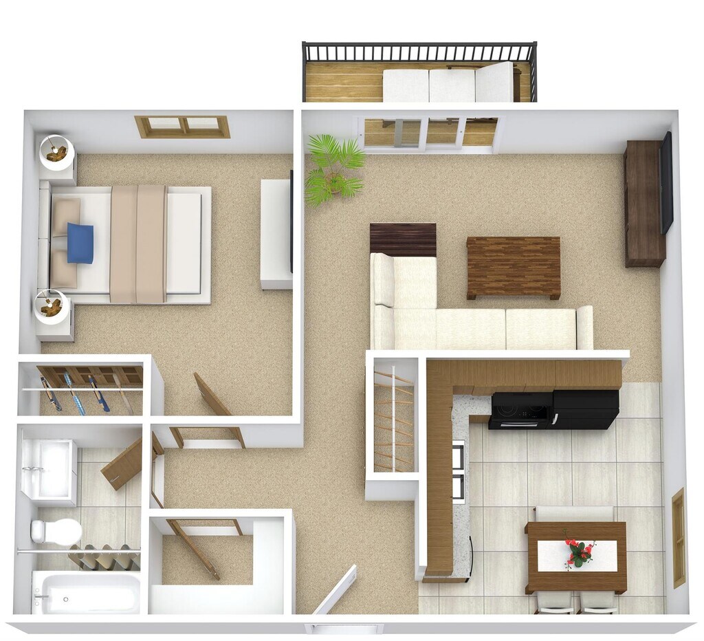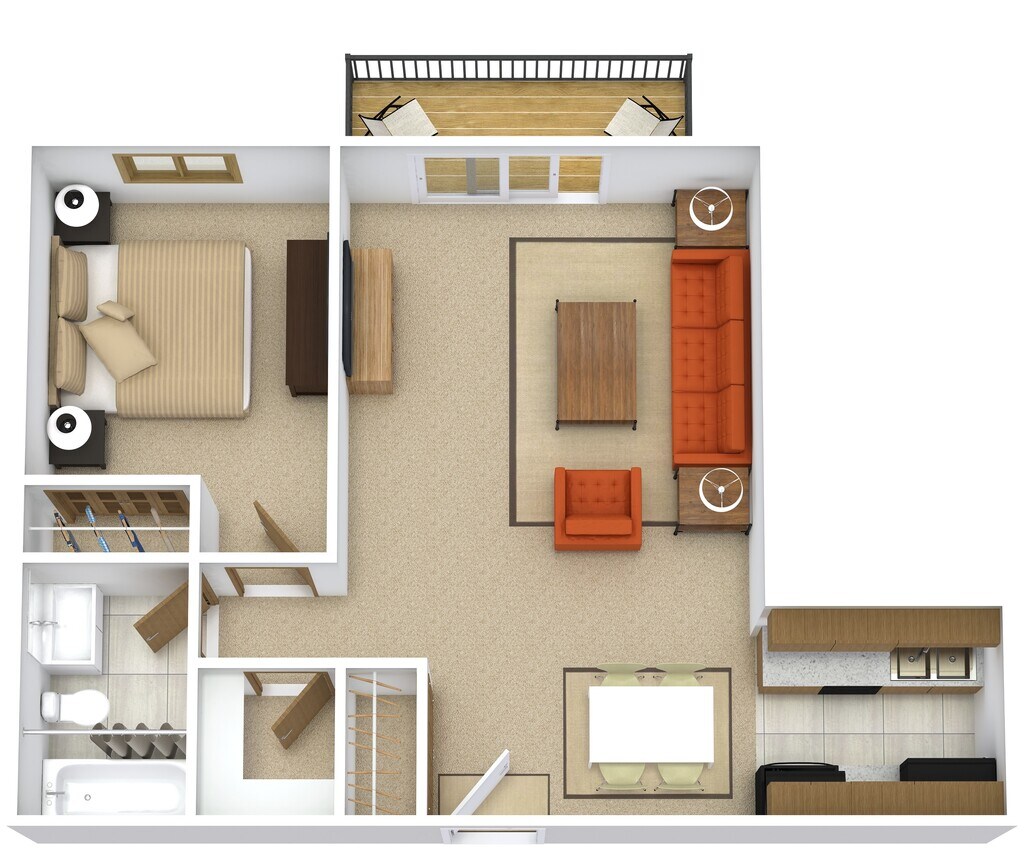 1 Dormitorio, 1 Baño, 673 pies²El más grandeEsta opción tiene las unidades más grandes para este modeloGalería del Modelo