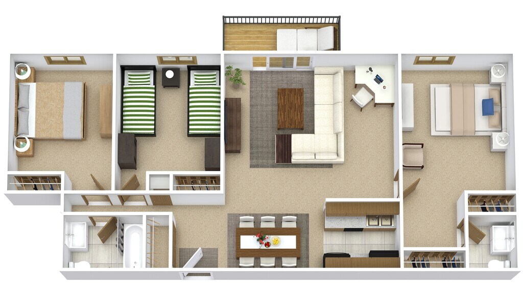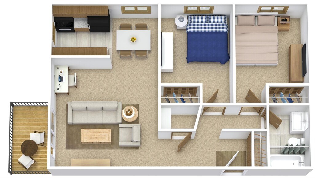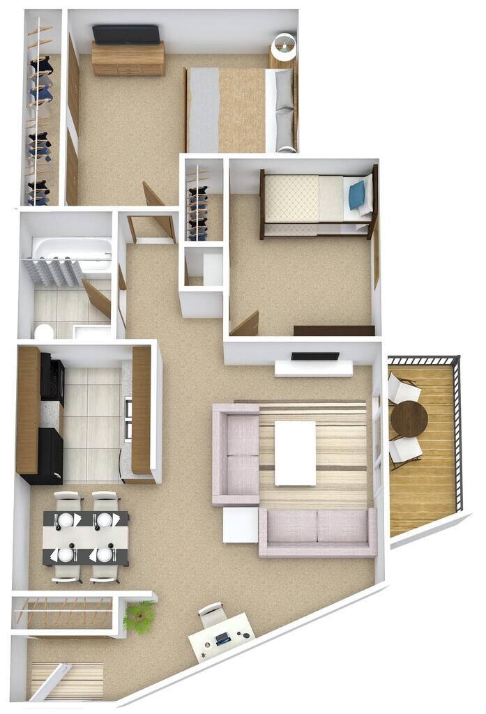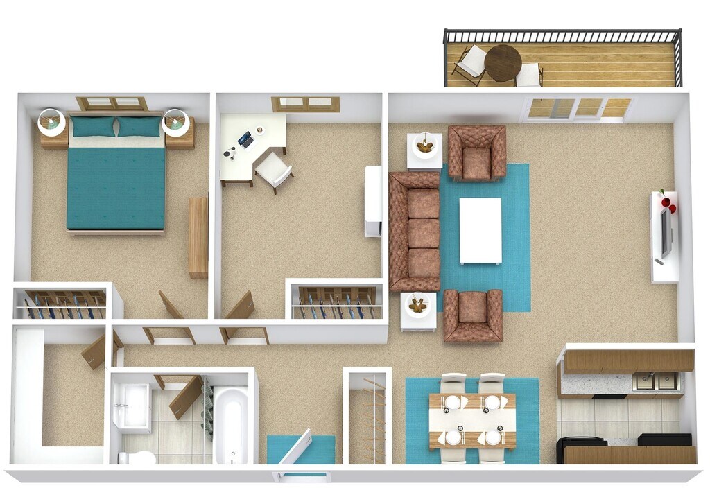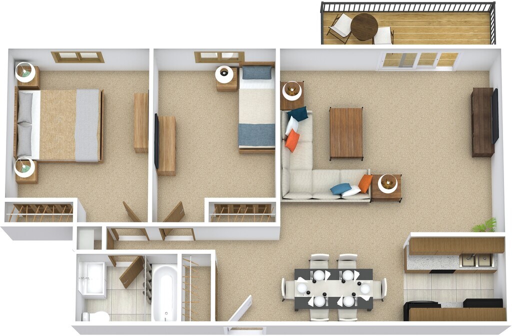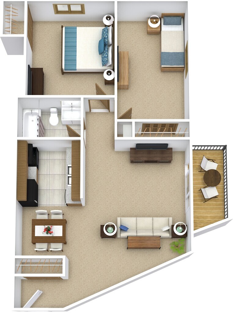 Modelo de apartamento: CedarDesde $1,2852 Dormitorios, 1 Baño, 845 sq ftDisponible Ahora![]()
