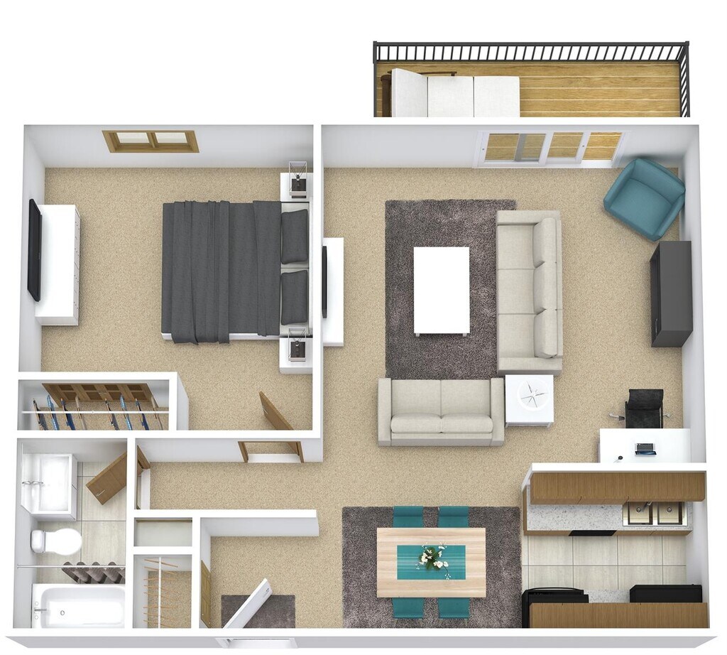 Cedar - Imagen 1 Unidad de apartamento: 850-206Modelo de apartamento: Cedar$1,4202 Dormitorios, 1 Baño, 845 sq ftDisponible AhoraAspen