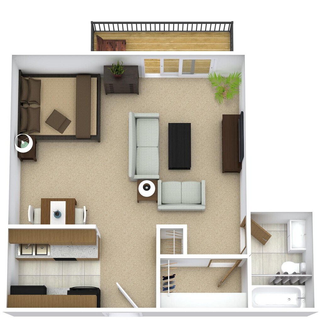 Willow - Imagen 2 Unidad de apartamento: 1245-114Modelo de apartamento: Willow$1,195Estudio, 1 Baño, 425 sq ftDisponible Ahora1 Dormitorio