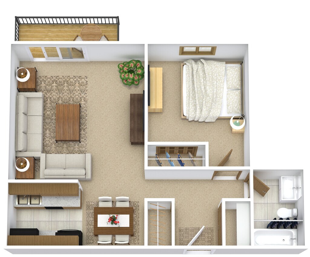 Modelo de apartamento: HickoryDesde $1,1801 Dormitorio, 1 Baño, 644 sq ftNo Disponible![]()