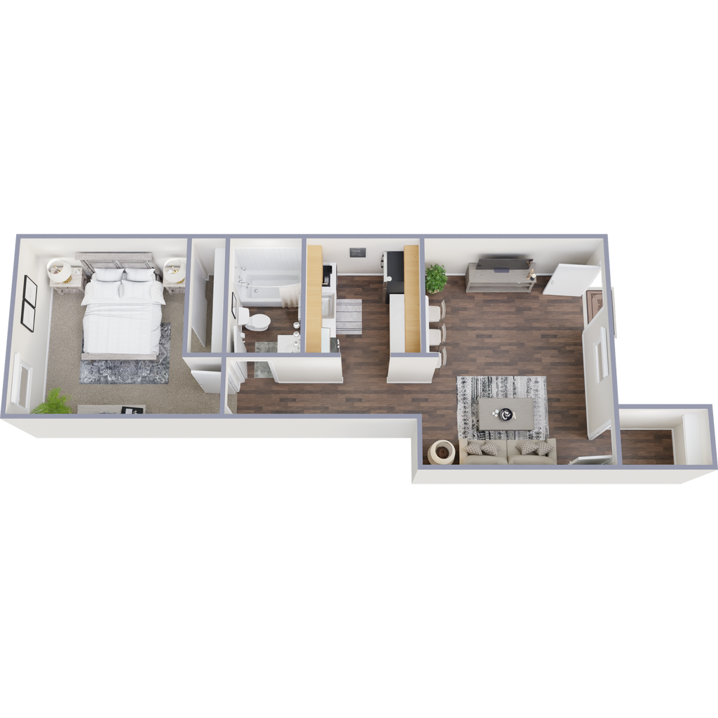 1 Dormitorio, 1 Baño, 624 pies²Disponible AhoraEl más grandeEsta opción tiene las unidades más grandes para este modeloGalería del Modelo