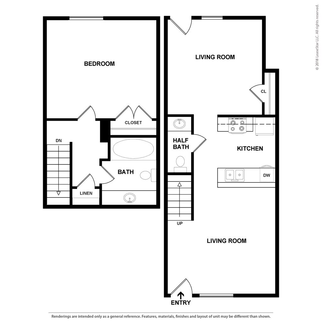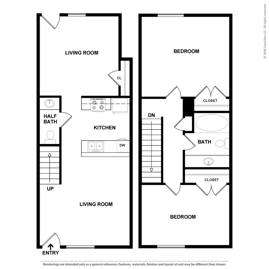 Modelo de apartamento: Hampton2 Dormitorios, 1.5 Baños, 1030 sq ftDisponible Ahora![]()