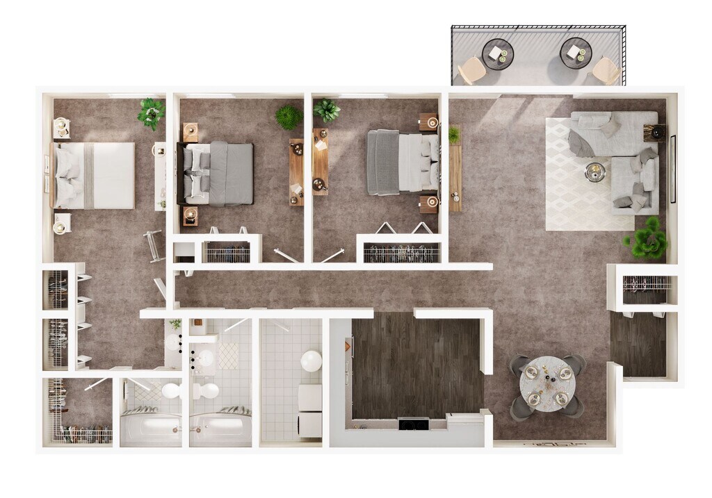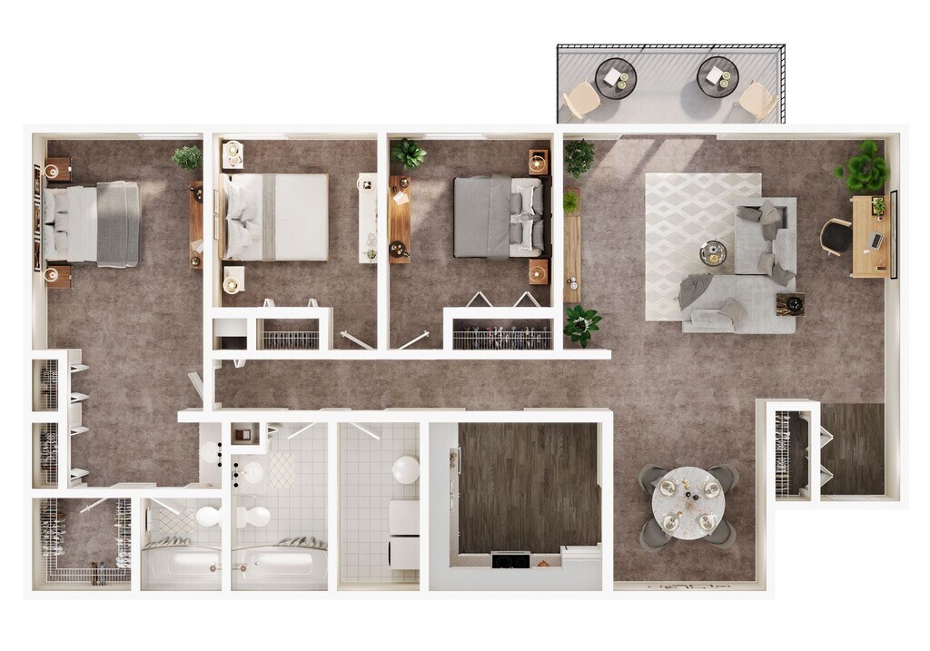 1 Dormitorio, 1 Baño, 1075 pies²Disponible AhoraGalería del Modelo