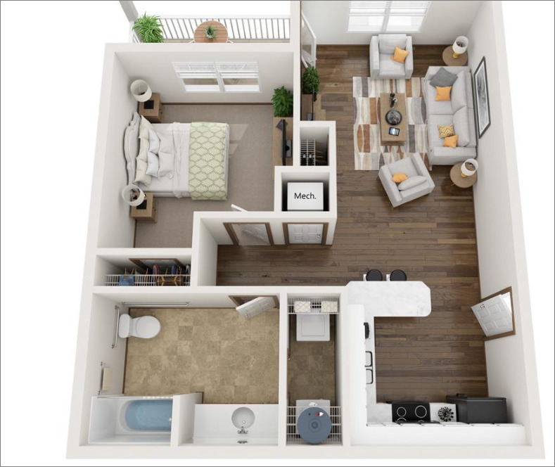 1 Dormitorio, 1 Baño, 759 pies²Disponible AhoraGalería del Modelo